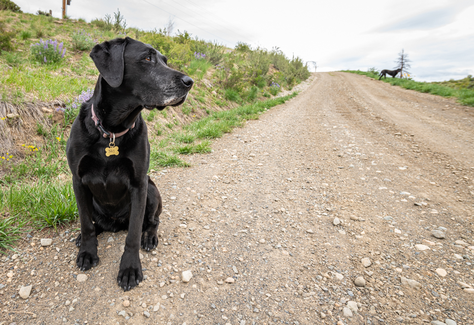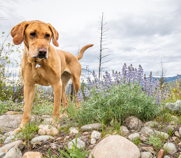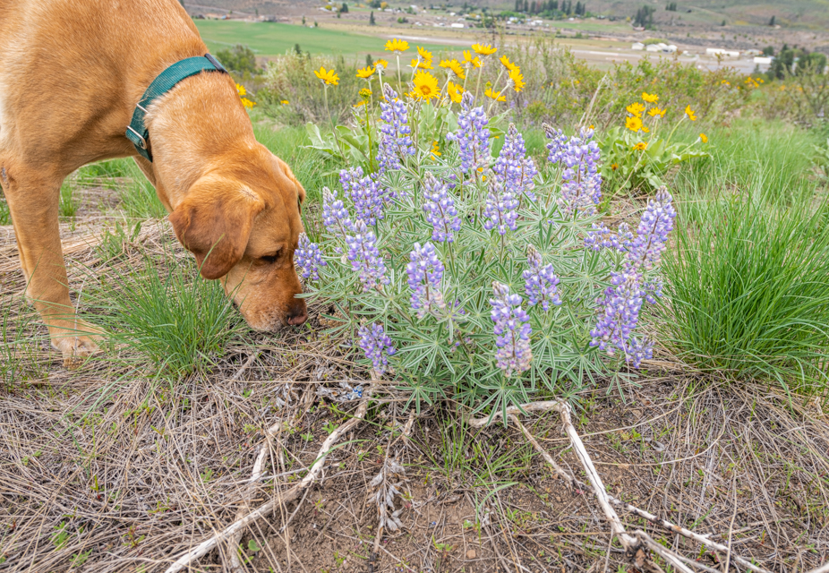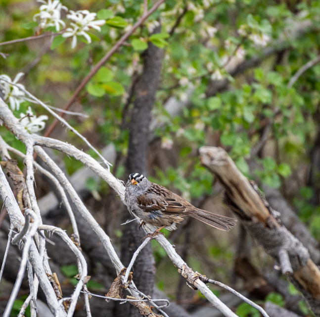 Red Molly came for a visit. Flickers and Lewis’s Woodpeckers started picking out holes for nesting. A rubber boa stopped in the middle of the road. I moved it so it would not be flattened. White-crowned Sparrows and Yellow-rumped Warblers arrived in big numbers. Wildflowers are in full bloom.