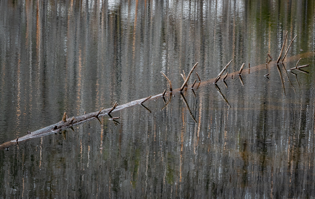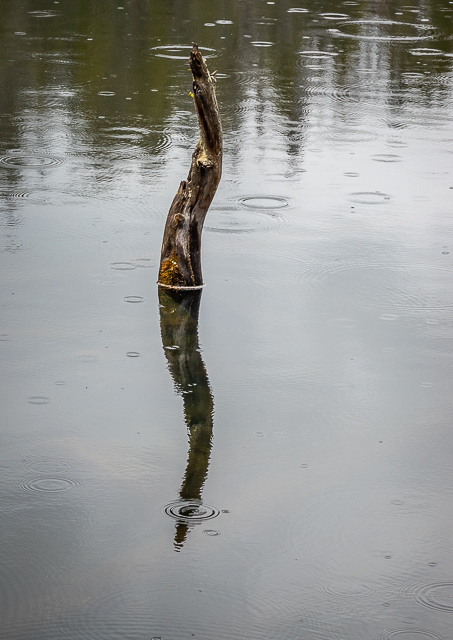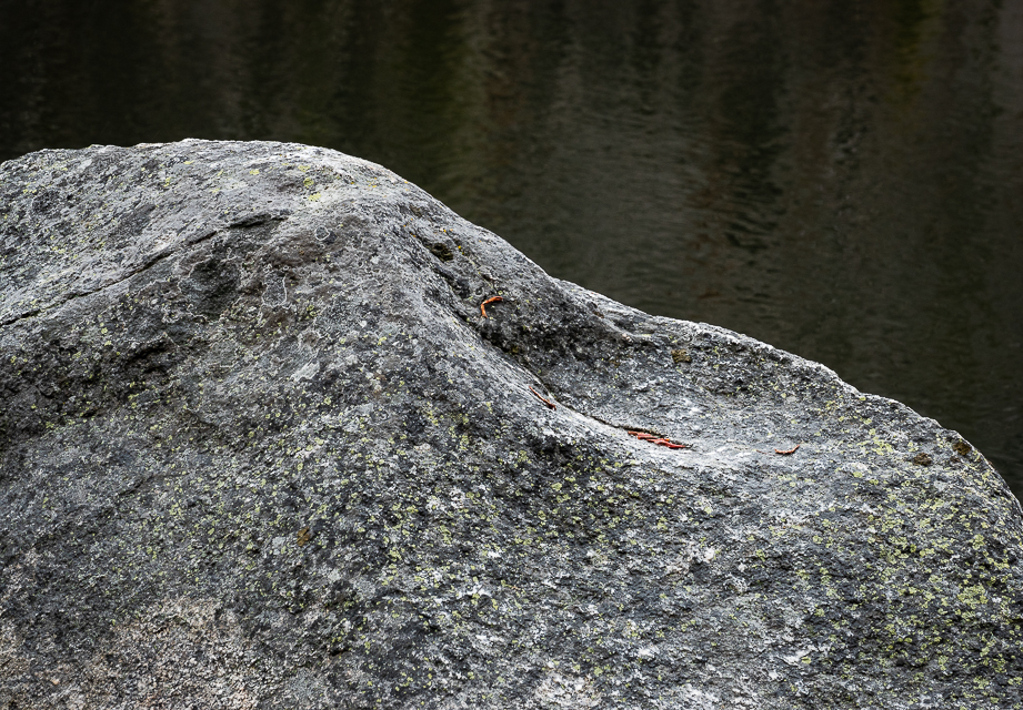 Last weekend we went to a new place in a light rain. It burned some years ago and the trail has not been maintained this year so we had many logs to clamber over or get around. At 5500′, we found the small lake still partially frozen. A Spotted Sandpiper did its characteristic bobbing on the ice. We had the place to ourselves til we turned to leave and then we encountered three different parties. Mostly it was quiet in the burned forest.