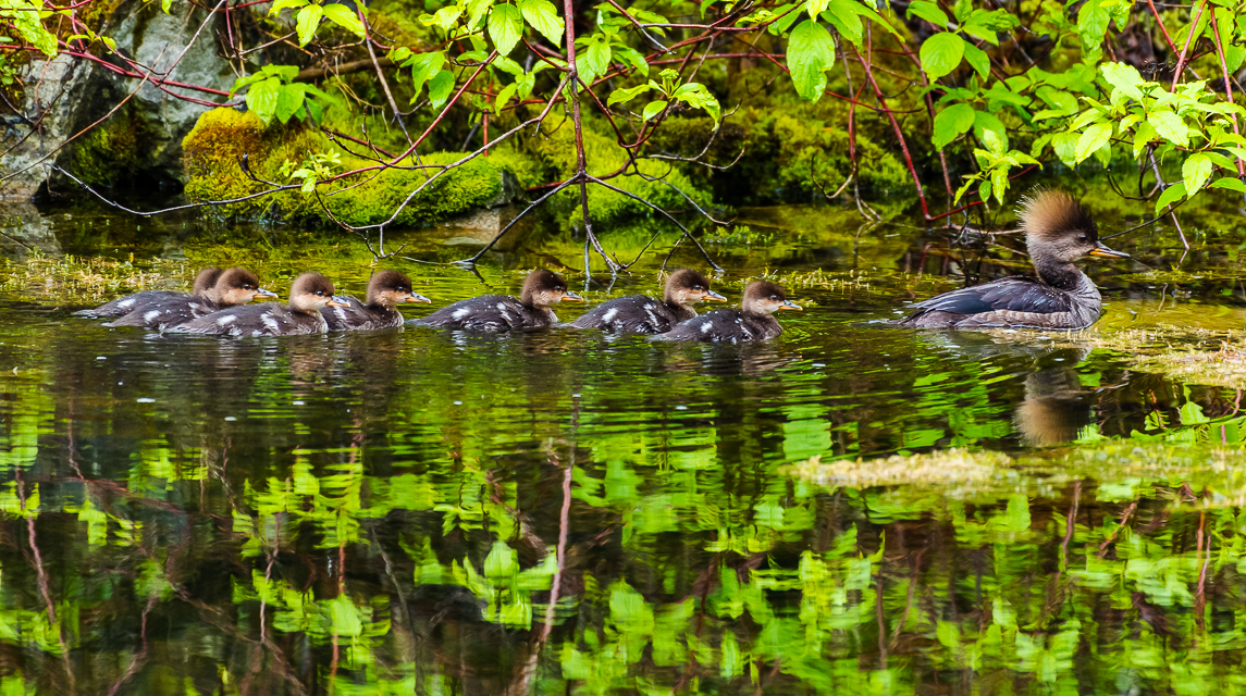 Another lake, another Hooded Merganser, this one with a big family to care for.