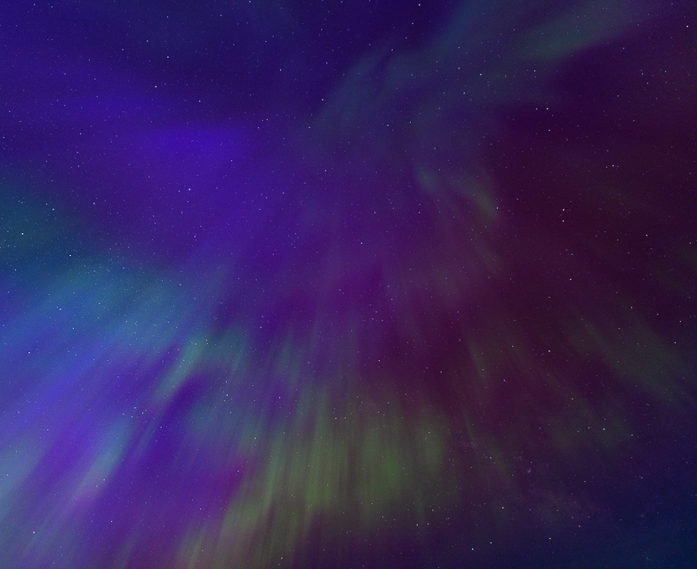 The girls and I were camped at our favorite ‘secret’ lake last week and on the last night, I made a plan to photograph the Milky Way. I went to bed at 10 with the alarm set for 2 am when the Milky Way would be stretched above the horizon. Of course, when I was awakened at 2, my body only reluctantly went outside to make sure I had the plan correct. Well, being offline for several days, I did not get the message that instead of the Milky Way, I was going to see the biggest Aurora Borealis of my life. At first I was puzzled because it was so light out and I could not see the stars but then my mind began to wake up and focus and I could see the waves of light filling the night sky, even as I looked to the south! I had no view to the north because the forest was right behind me. The waves of light seemed to come from directly above me, like a revolving kaleidoscope! And then some major waves came from the north east. I can only imagine what the view would have been beyond the trees.