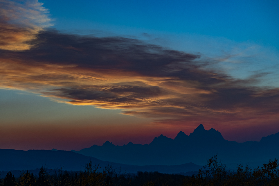 The girls and I set off for northern Utah a few weeks ago. We planned to explore the Mirror Lake area, starting from Evanston Wyoming. When we got to Evanston, I learned of a wildfire south of Mirror Lake that had the entire area where we were going to camp and hike, under a level two evacuation notice. We could have driven through but could not stop or camp. Darn. The USFS suggested we try a place about 35 miles east of there. It was not lovely and soon smoke filled the air. We spent one entire afternoon reading books (me) and napping (dogs) inside the camper. It was poisonous outside. After two nights, we started driving north. We spent one night along the Snake River and then continued north towards the Grand Tetons. In Jackson, people were wearing masks to protect them from the smoke. There were fires burning to the east and to the west of the park. We continued north, never seeing the famous mountains. We finally ended up boondocked high on a ridge on USFS land. At that elevation, we were above the worst of the smoke and I was able to see and photograph the famous comet whose name I don’t know.