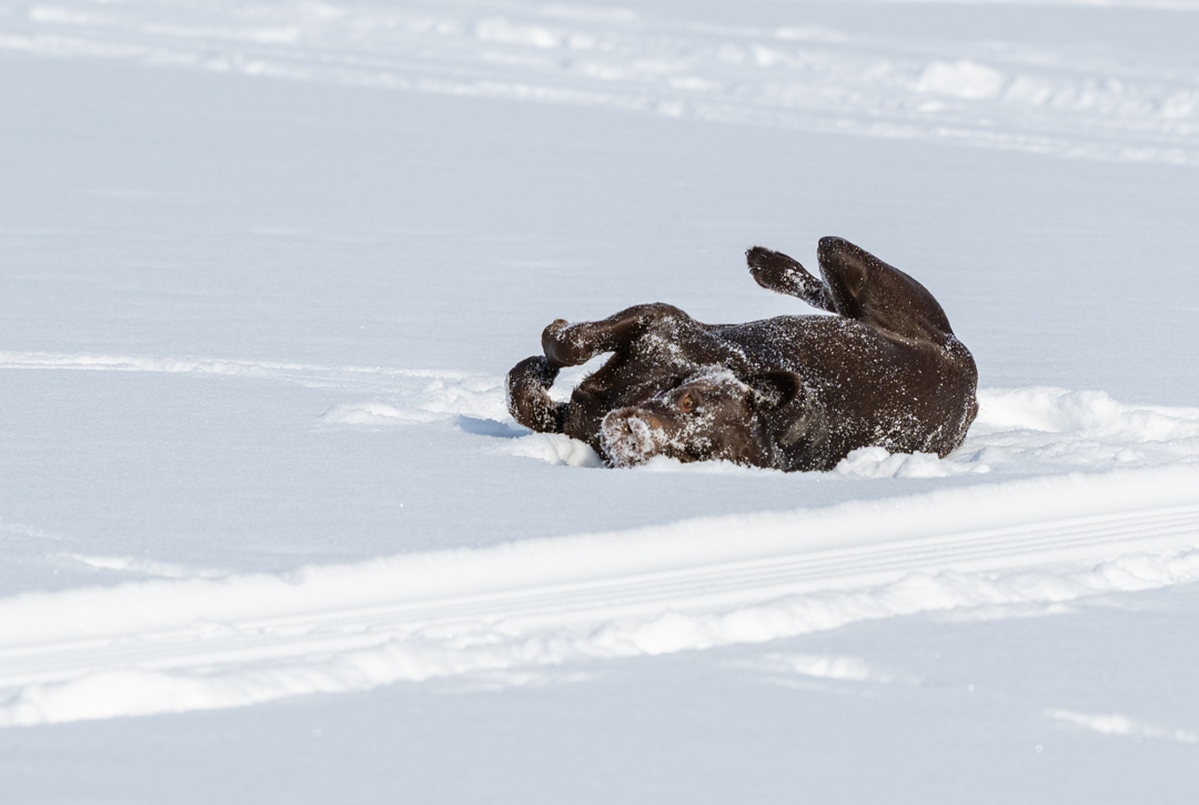 Well, it was frozen. Willow’s favorite lake covered in ice and snow. At first she was skeptical that it was a good idea and she kept returning to shore but when she realized that I was going to keep walking, she joined me and had fun. The ice is thick enough for ice fishing so I figured it was good for walking. There aren’t many good places for dog walking this time of year. This winter is dragging on, occasionally acting like it will give up its grip and allow Spring to start but it’s all fake news. Of course, it’s still winter. It is February for goodness sake. Sigh.