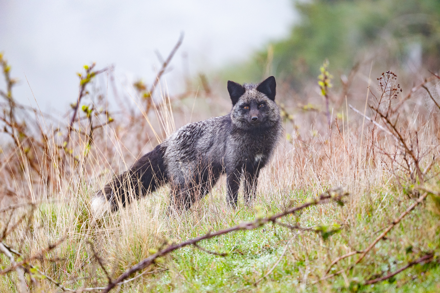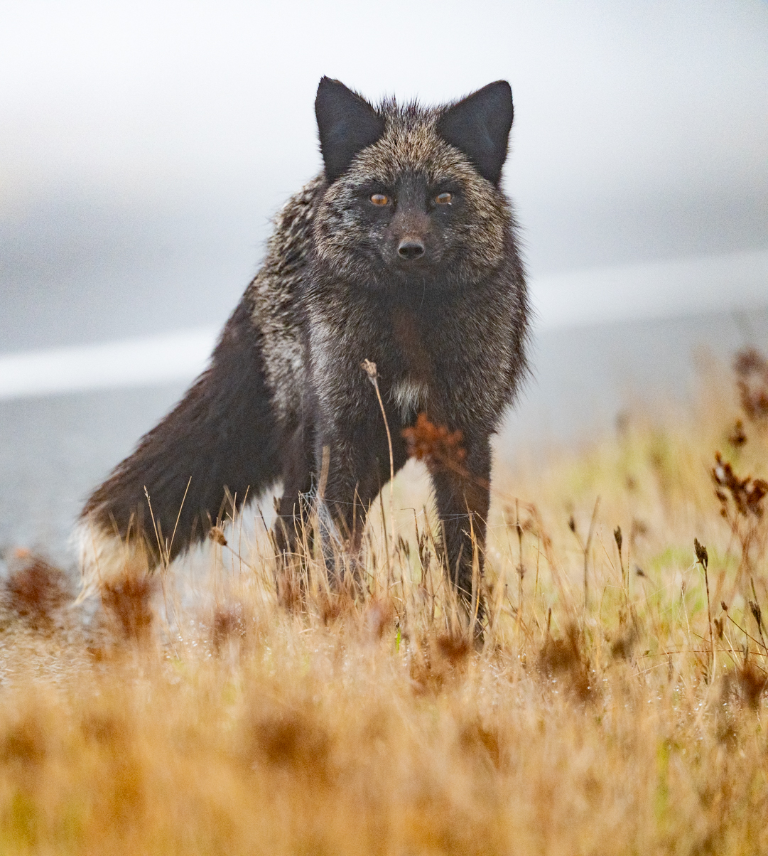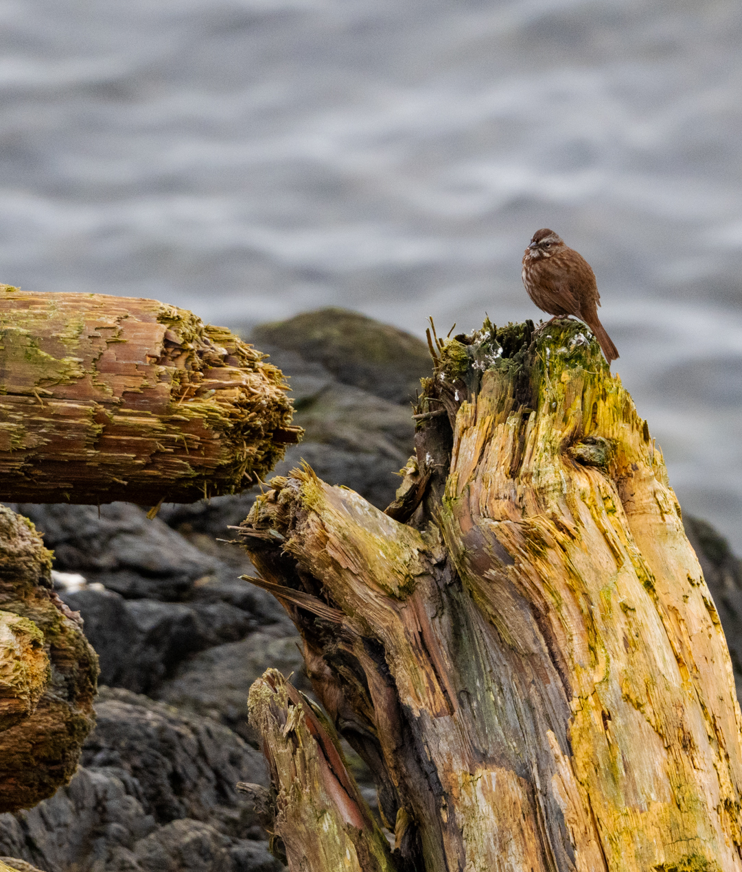 Willow and I spent eighteen days in western Washington last month. Our trip coincided with the notorious weather system sometimes called the pineapple express – lots of rainy days. While the weather was disappointing, we still managed to get in lots of walks and I got to do some wildlife photography, mostly birds. I did make a special trip to see foxes and it was a big disappointment. I only found one fox and it was so habituated to people that it sat in the middle of a county road and begged for food. It was a beautiful animal. When I was in Churchill, they called this a cross fox but here, I learned that it is a color variation of a red fox. Foxes were introduced to this island to reduce the rabbit population. The rabbits are also an introduced species.