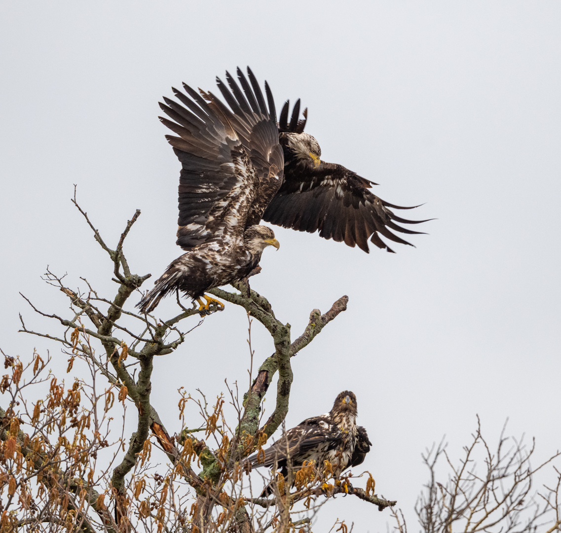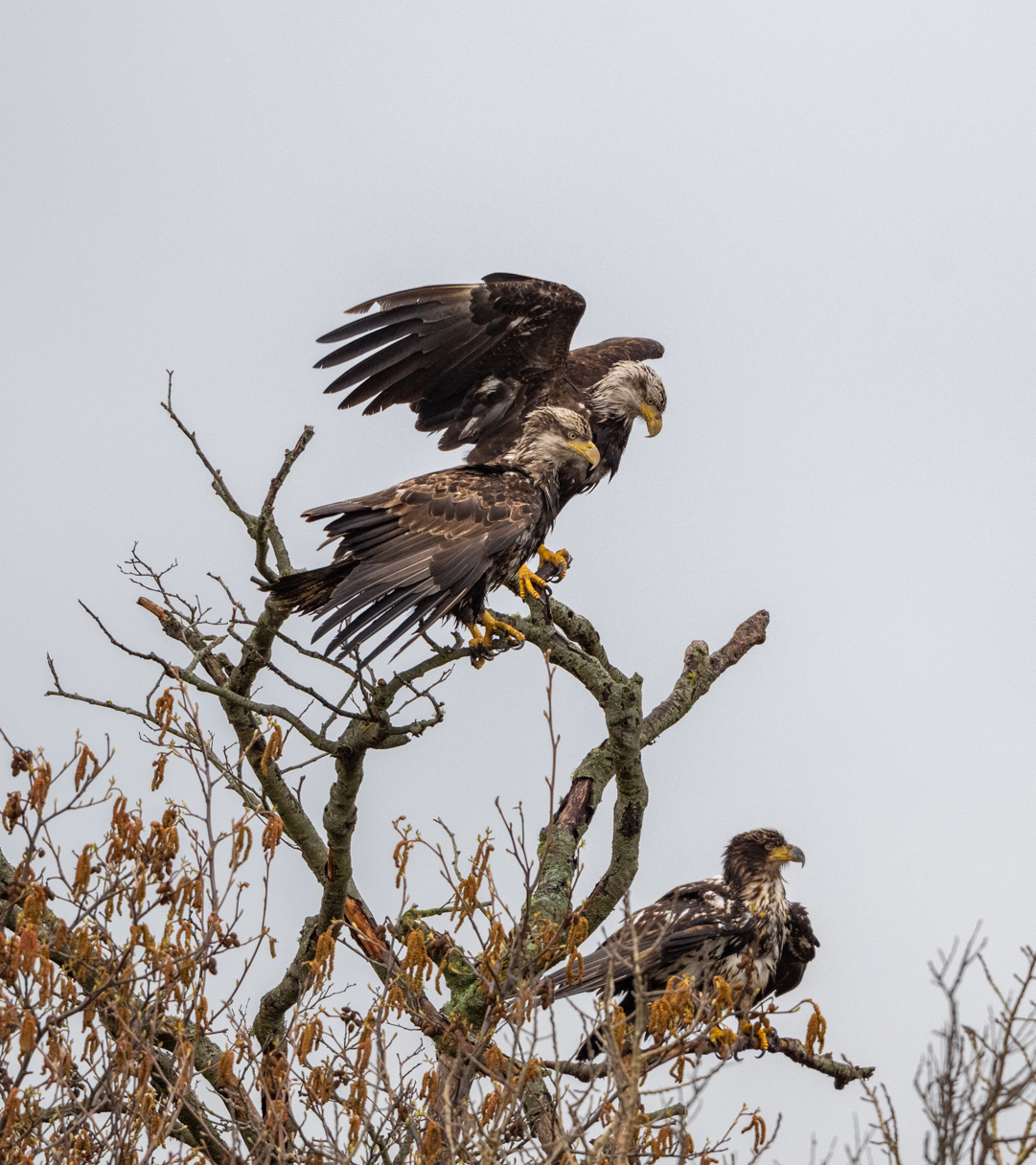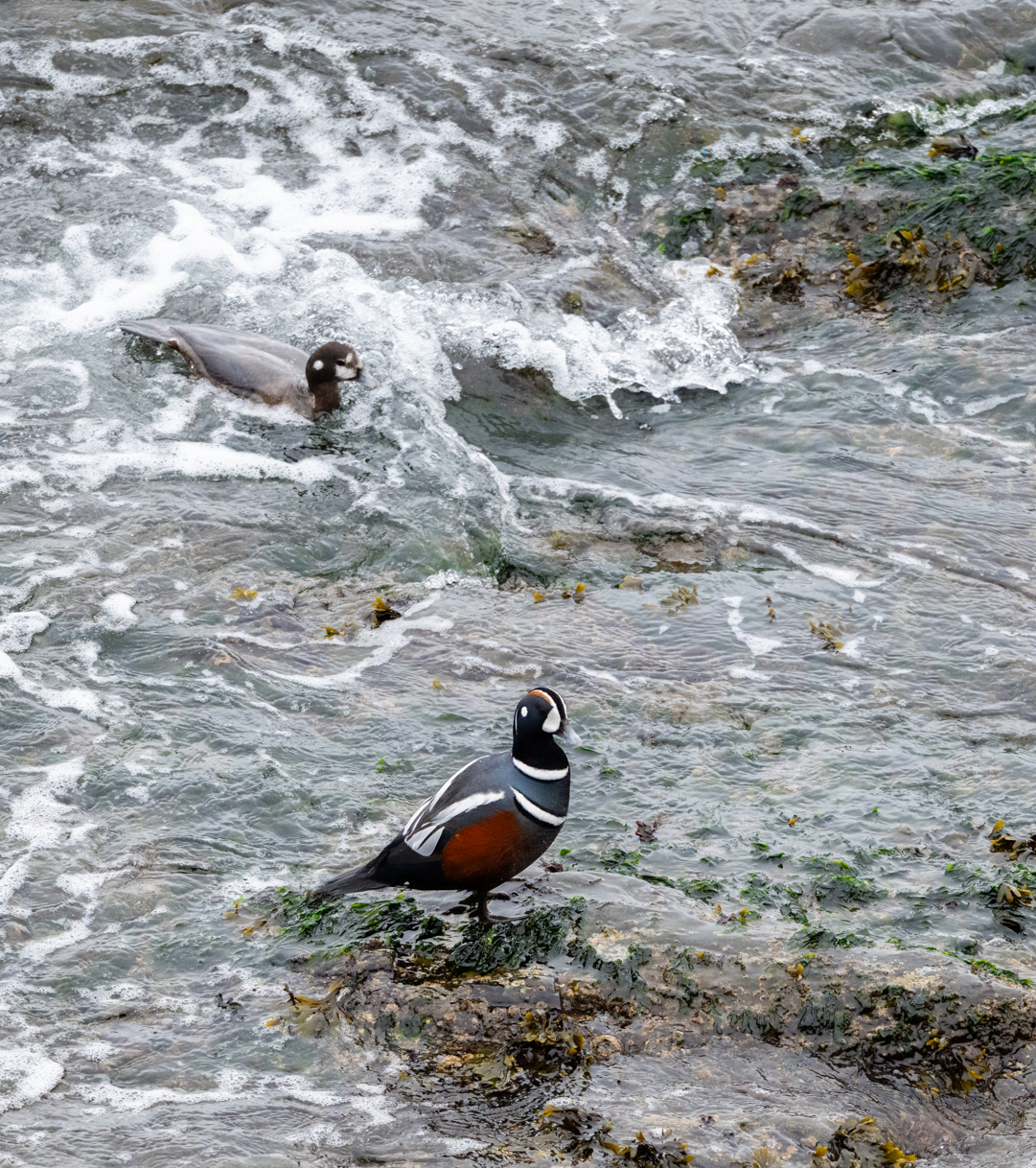 Willow and I spent eighteen days in western Washington last month. Our trip coincided with the notorious weather system sometimes called the pineapple express – lots of rainy days. While the weather was disappointing, we still managed to get in lots of walks and I got to do some wildlife photography, mostly birds. I did make a special trip to see foxes and it was a big disappointment. I only found one fox and it was so habituated to people that it sat in the middle of a county road and begged for food. It was a beautiful animal. When I was in Churchill, they called this a cross fox but here, I learned that it is a color variation of a red fox. Foxes were introduced to this island to reduce the rabbit population. The rabbits are also an introduced species.