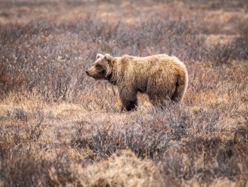 We saw several grizzly/brown bears in Denali. There was one that we saw once or twice a day because it was hanging out in the Savage River area pretty much all of the time. The trails in that area were closed because of the bear. Near as we could tell, the bear was just enjoying entertaining the tourists and photographers and making the caribou scamper occasionally. Sometimes the tourists and photographers were too close and a park service employee asked them to scamper out of the way so the bear could cross the road. I made sure to keep other tourists and photographers between me and the bear.