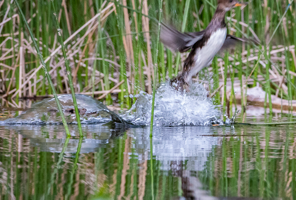 One of our favorites was this nearby Pied-billed Grebe eating its lunch. It was very close and gave us such good views! The lump in its throat in the last image is the fish.