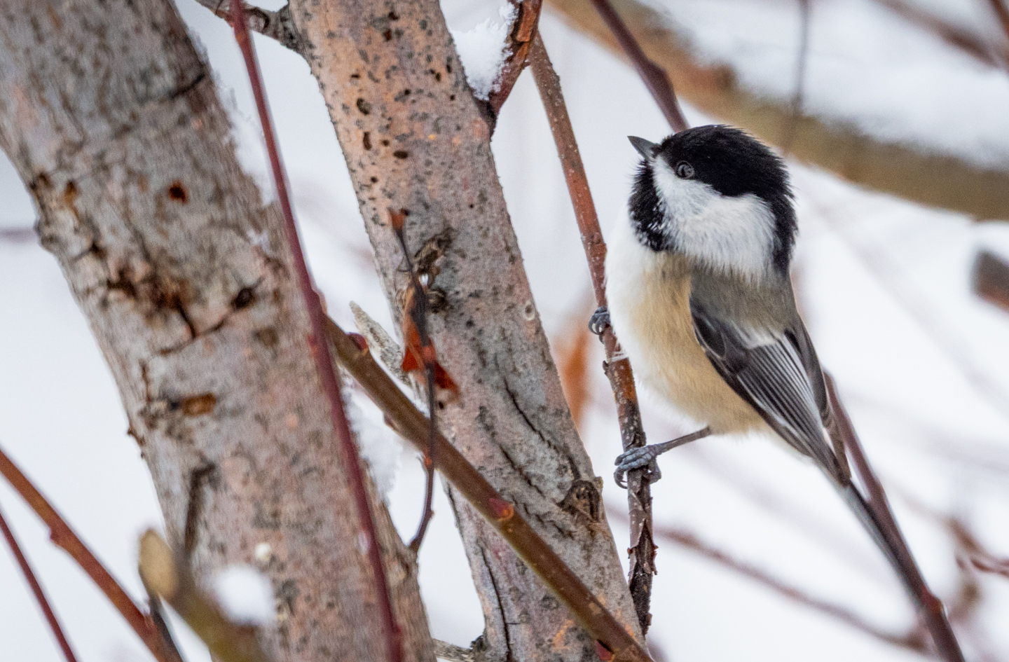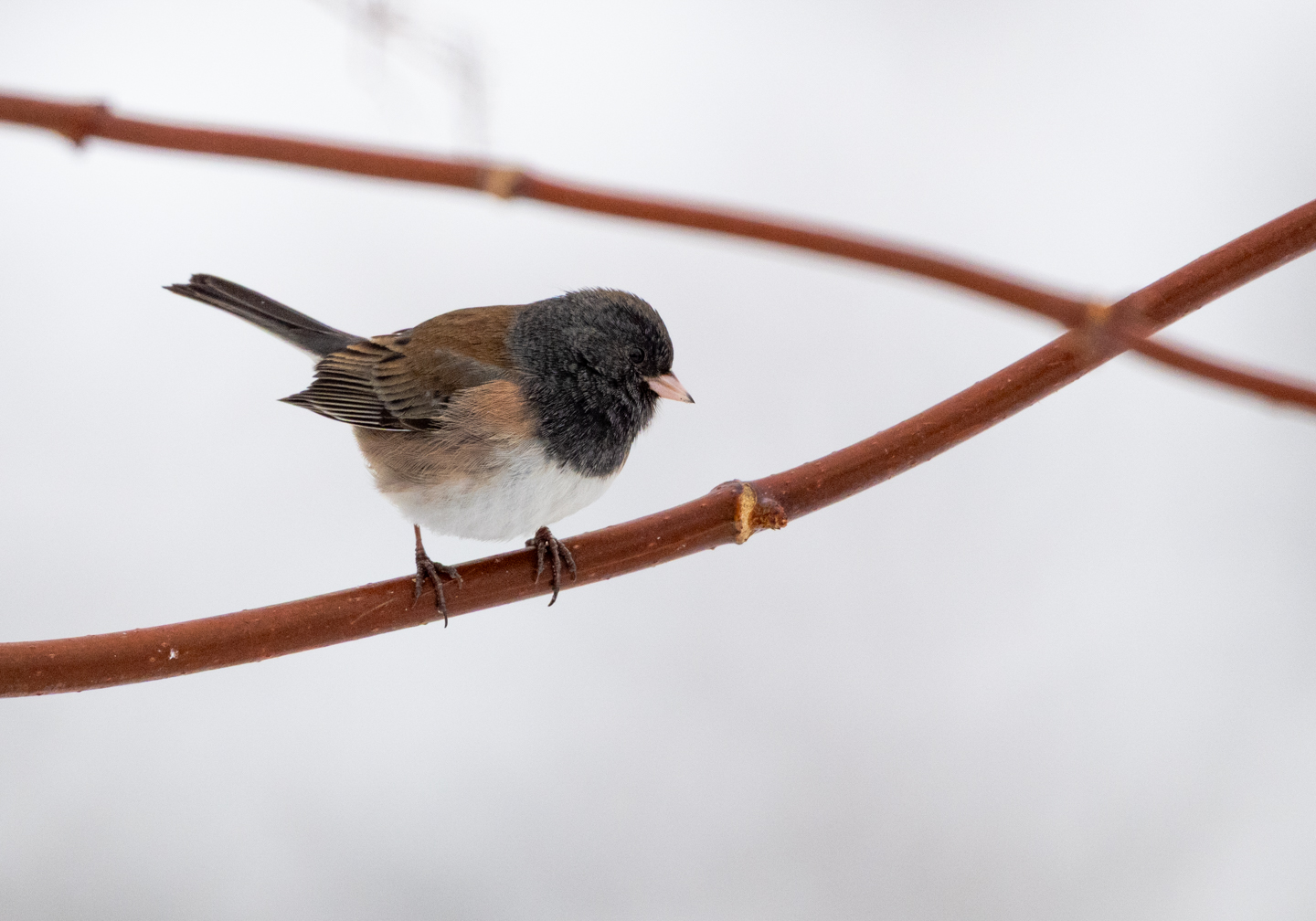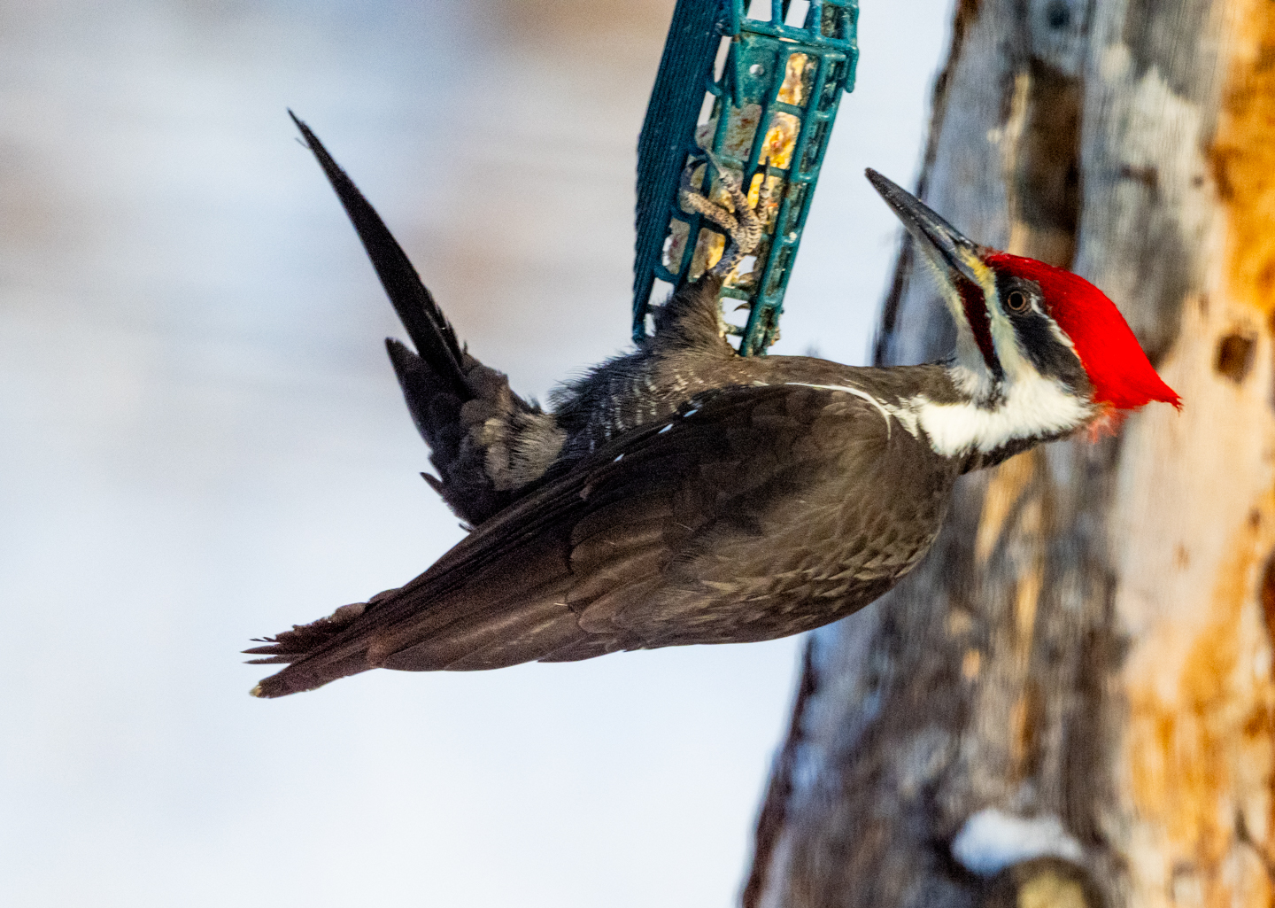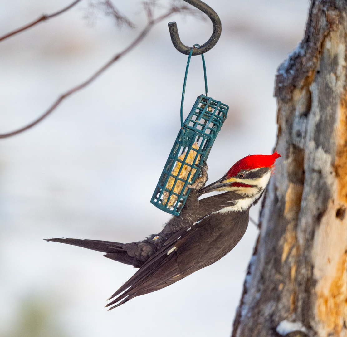 The feeders have been busy recently. Lots of California Quail, Red-winged Blackbirds, House Finches and Dark-eyed Juncos. Today there were three Spotted Towhees which are not common in winter here. Black-capped Chickadees come by occasionally. Woodpeckers too – Hairy, Downy, Pileated and Northern Flickers. And the occasional Cooper’s Hawk. Plus the view from our house on a sunny winter morning.