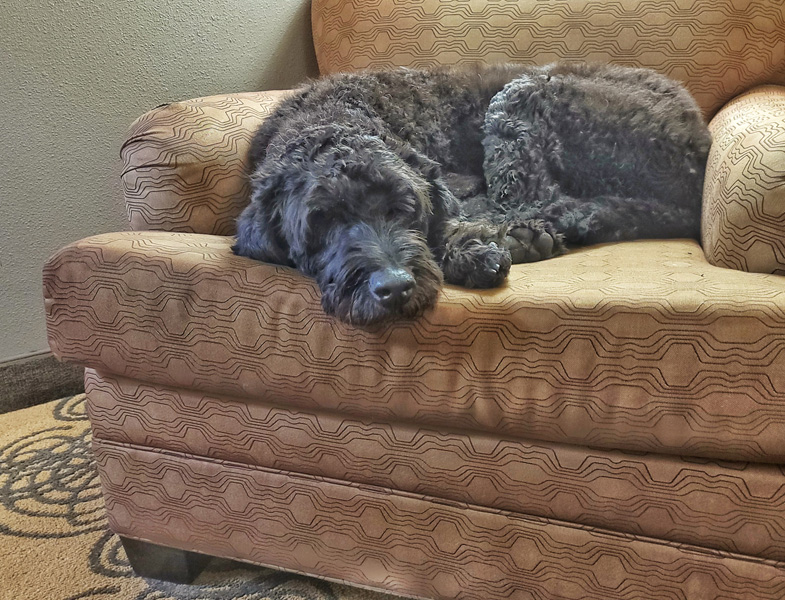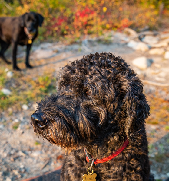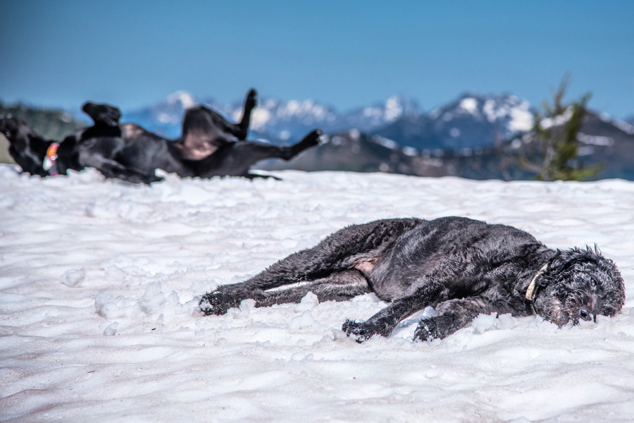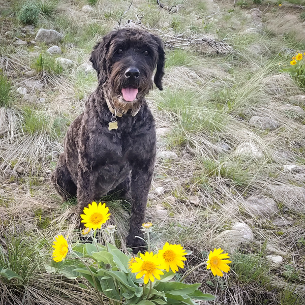 Willow likes to lead the way but, so far, she doesn’t get out too far ahead. She is always turning back to see me and/or Sky. And today, she posed nicely with her big sister for portraits in front of the mountains. She is five months old and learning so much. Maybe she is a Good Girl, after all.