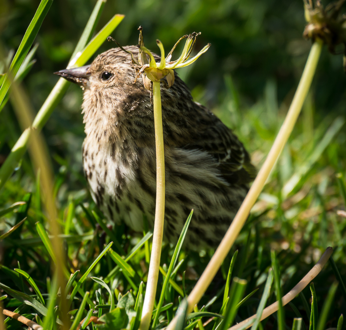 This Pine Siskin was obsessed with our dandelions. We have a good crop this year.