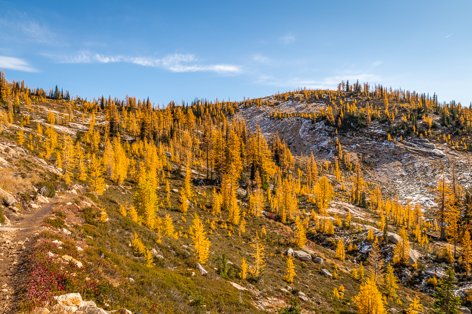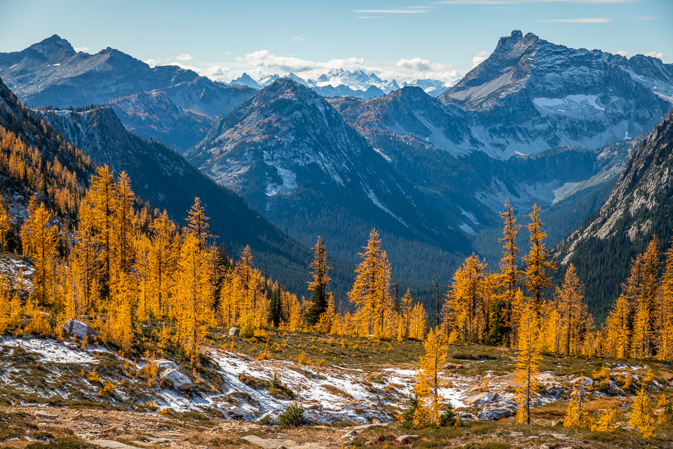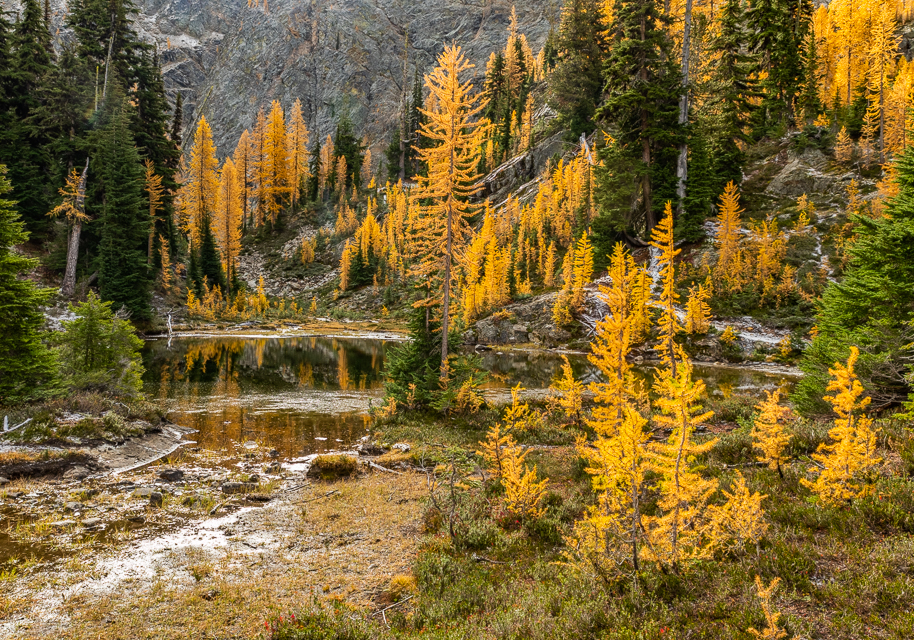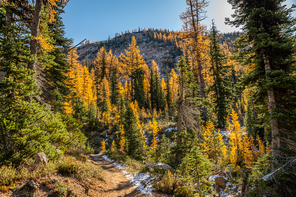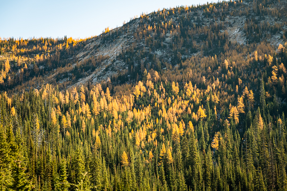 It looks like fall in the mountains is coming to an end. It has continued to snow up there this week. I imagine the larch needles are falling to the ground.