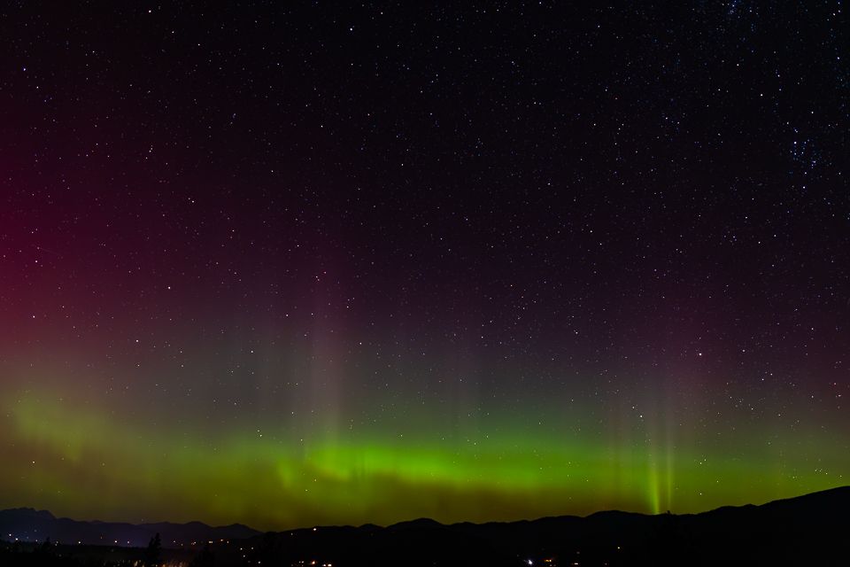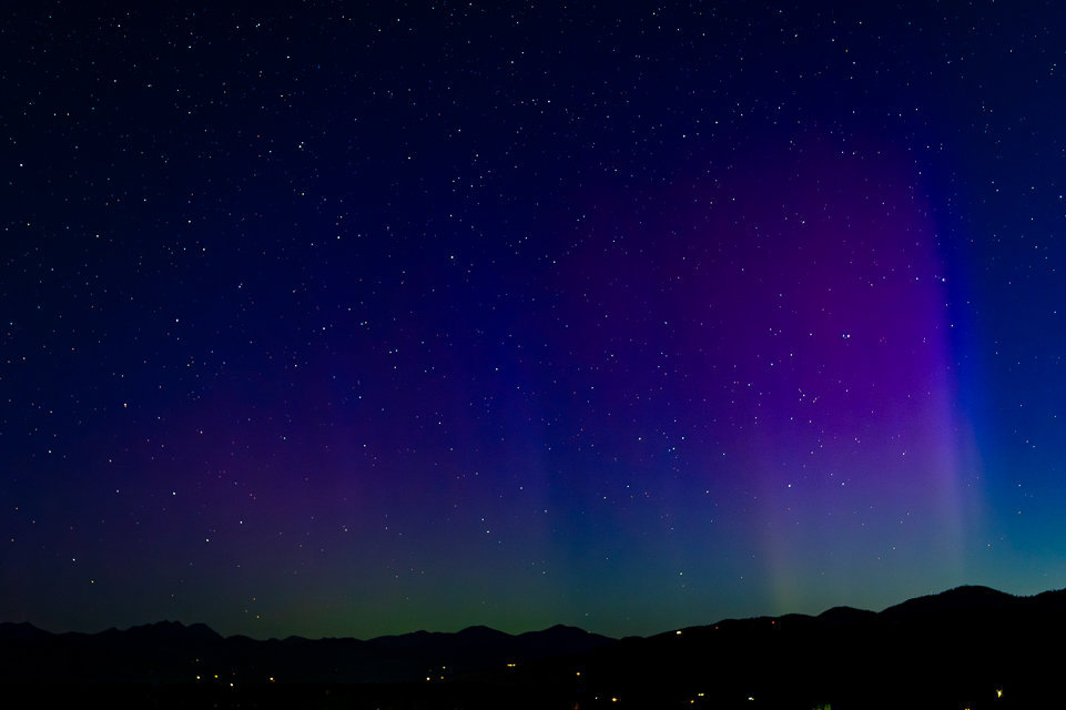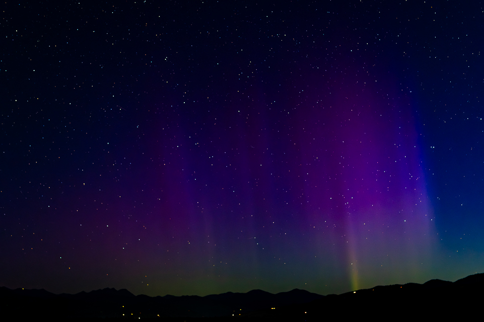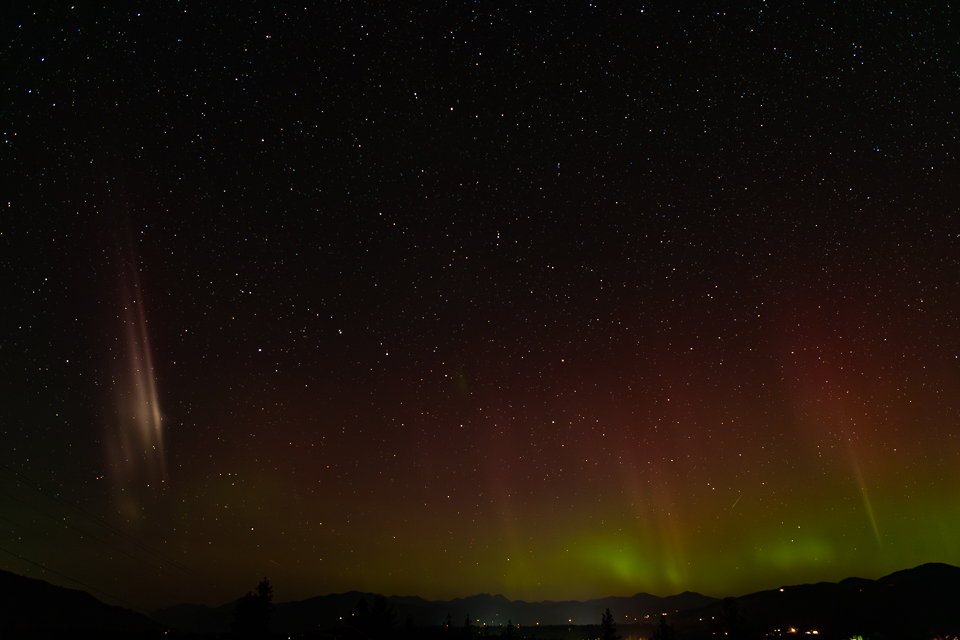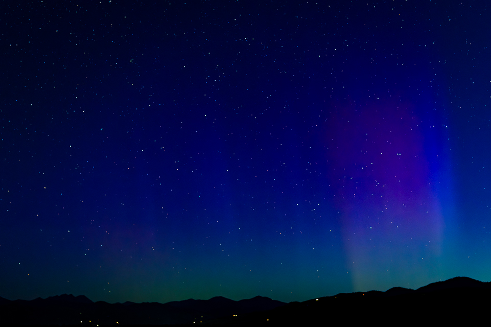 One of the benefits of having an old dog is getting to go outside when it’s still dark and seeing the stars, moonlight and even, sometimes, the aurora borealis. Sky had to go out around 4 this morning so there I was watching the constellation Orion and knowing that means summer is coming to an end. Orion is always prominent in the winter sky. I walked around the house to wait for Sky (you did know her full name is Night Sky Star Shine, right?) and then I could see the pillars of northern lights over the Milky Way. I’d had my camera ready for a light show a couple nights ago and slept through it so today I was ready for this early morning spectacle. It wasn’t as dramatic as some recent northern lights we have seen here but still it’s awfully pretty.