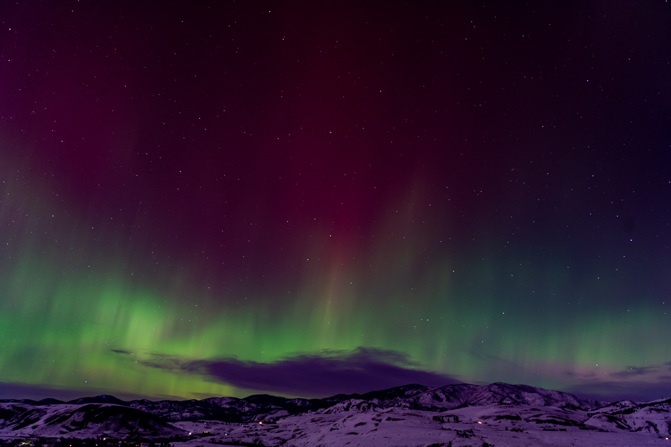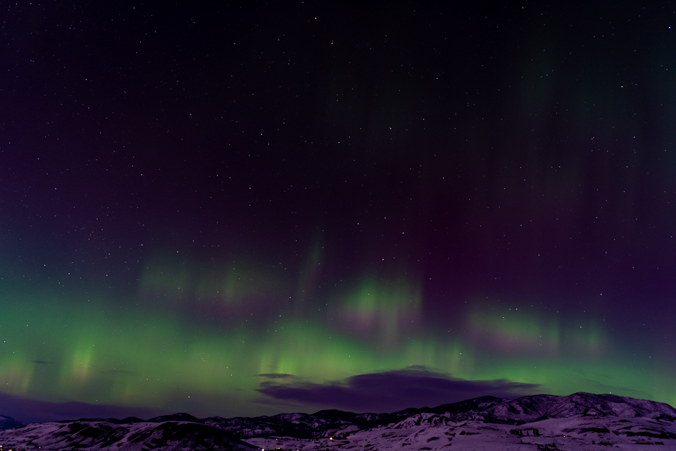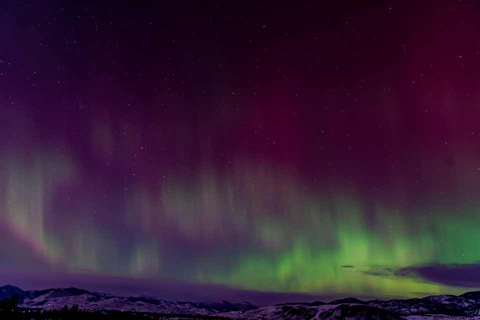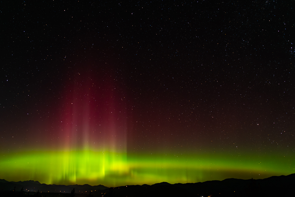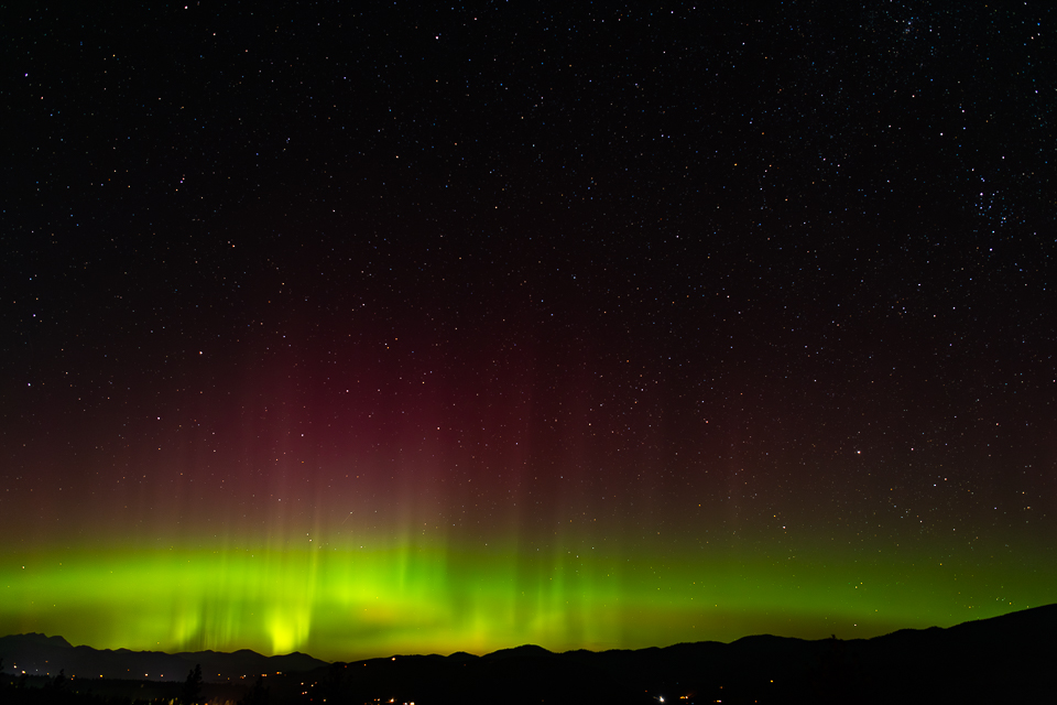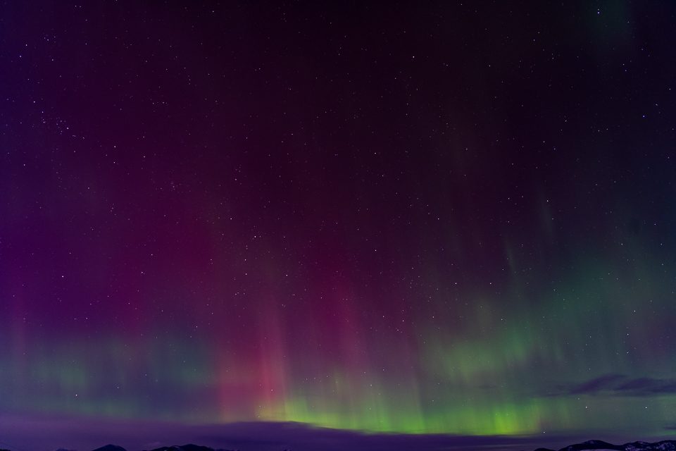 One of the benefits of having an old dog is getting to go outside when it’s still dark and seeing the stars, moonlight and even, sometimes, the aurora borealis. Sky had to go out around 4 this morning so there I was watching the constellation Orion and knowing that means summer is coming to an end. Orion is always prominent in the winter sky. I walked around the house to wait for Sky (you did know her full name is Night Sky Star Shine, right?) and then I could see the pillars of northern lights over the Milky Way. I’d had my camera ready for a light show a couple nights ago and slept through it so today I was ready for this early morning spectacle. It wasn’t as dramatic as some recent northern lights we have seen here but still it’s awfully pretty.