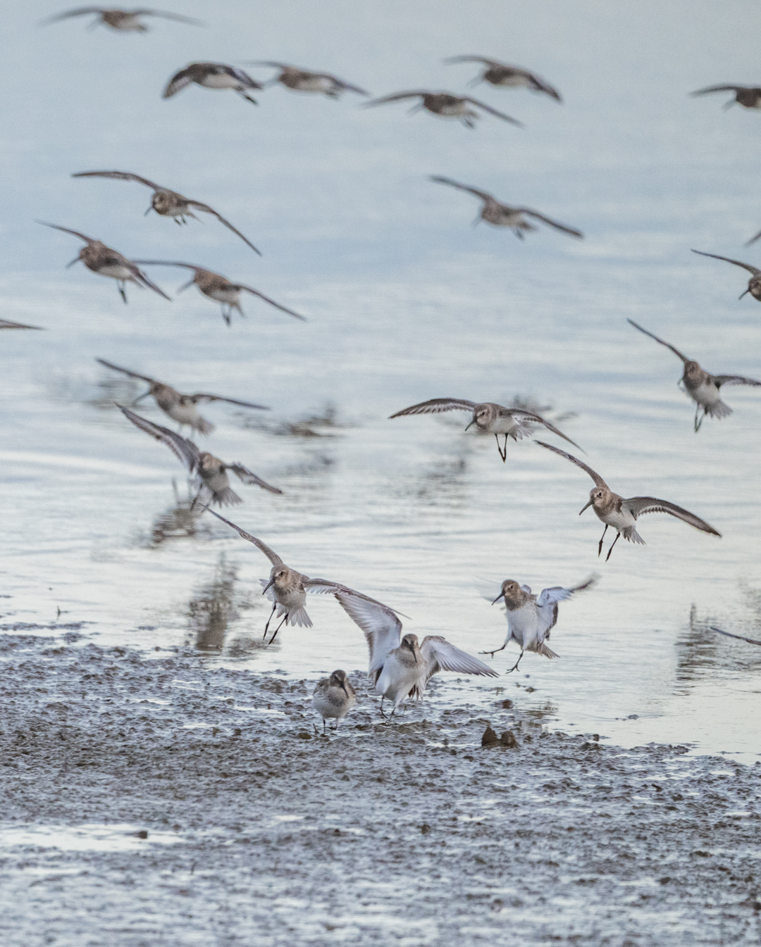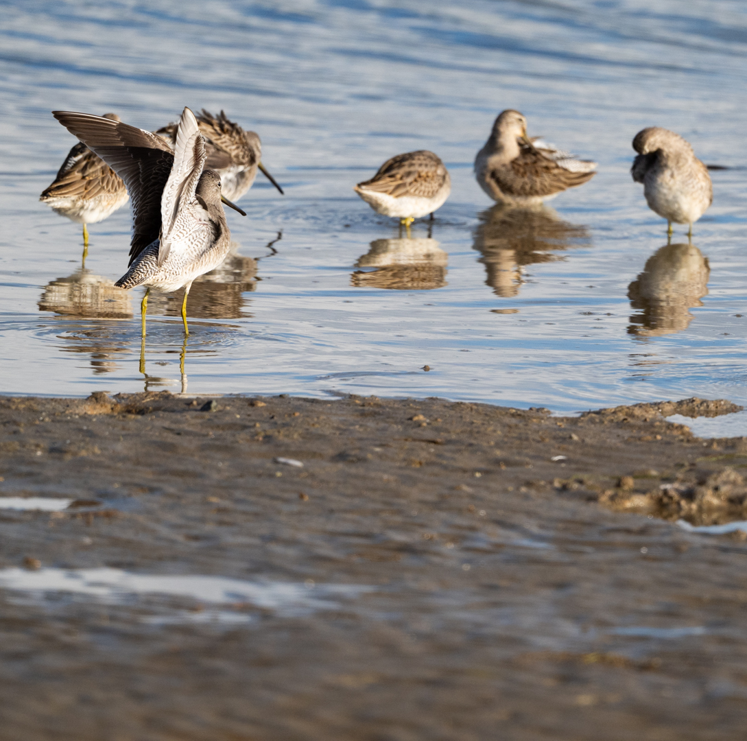 Willow and I spent a few days in NW Washington earlier this month and we got to visit some nice birding areas. Well, I did. Mostly, she had to wait in the car except for the places where dogs were allowed. We/I watched a lot of shorebirds – mostly Dunlin and Dowitchers, I think. Whether the Dowitchers were Long-billed or Short-billed, I don’t know. I am no shorebird expert. I do enjoy watching them as they fly in their synchronized groups and feeding in the mudflats with their probing bills.