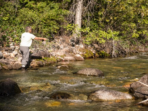 Last weekend my friend came up from the hotter part of the state in hopes of cooling off a bit and doing some fly fishing. The weather was not cool at all with the thermometer hitting 100 degrees both days! However, mountain streams are cool and refreshing and she was able to wet her line in a couple of them over the weekend.
