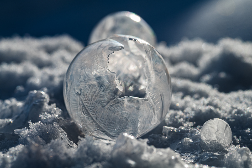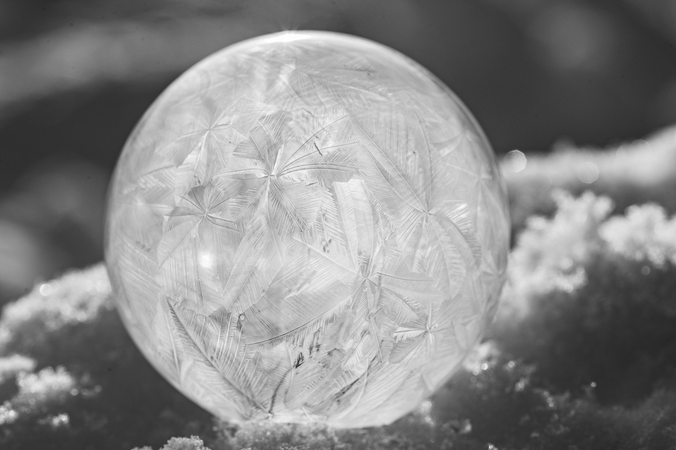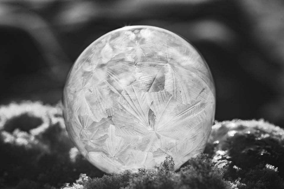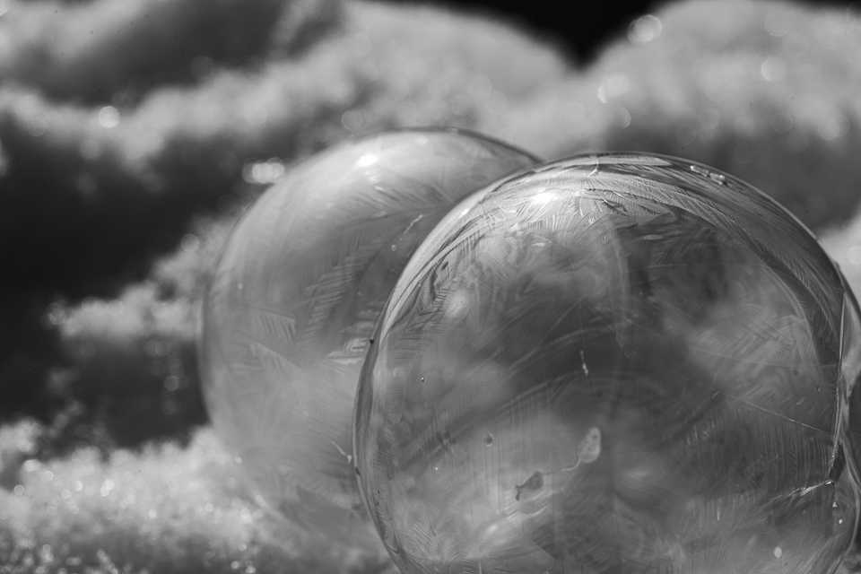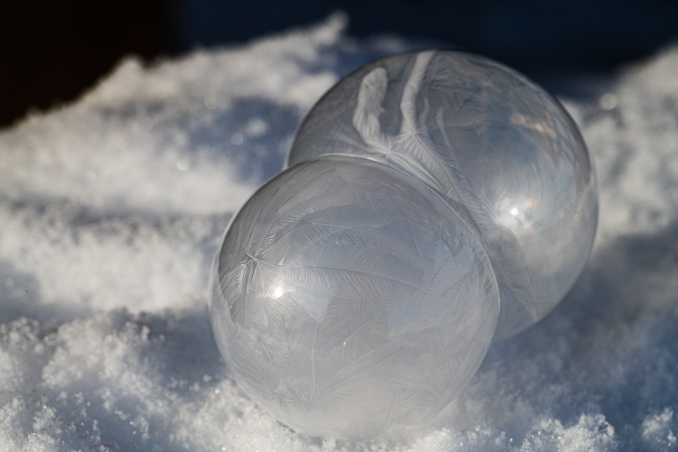 Yesterday it was twenty below zero. Fahrenheit. It was hard to do anything outside like breathe. It was perfect to make bubbles and watch them freeze and quickly photograph them. They are ephemeral, coating themselves with ice crystals and then slowly, or quickly, deflating.