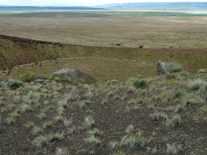 Standing above a large crater. You can see our truck near the lower rim for prespective.
