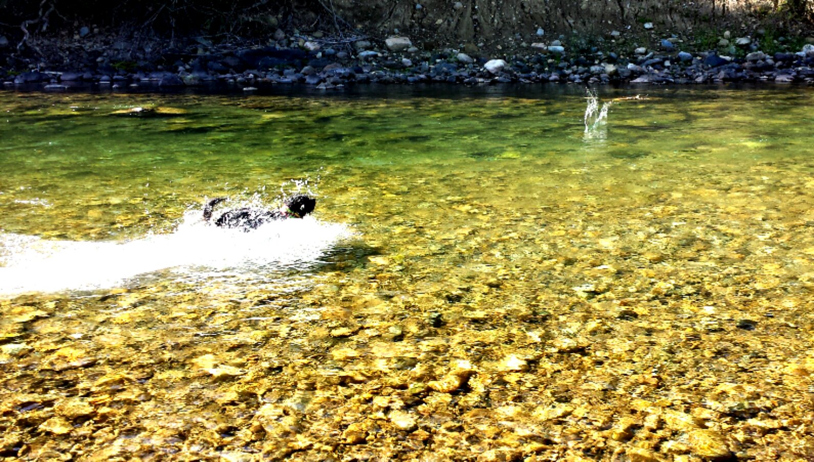 Yesterday MA said that Big Valley was being groomed and we ought to go and take the dogs. Her dog, Frida will pull her for a real skijoring experience. I think Sky will be trying that next winter when she is full grown. That puppy is now well over fifty pounds and almost seven months old. At the river yesterday she had her first swimming experience! That’s a red letter day for any Labrador. She took to it just as I expected – with vigorous energy. Now we know why she has such big feet – they are her paddles.