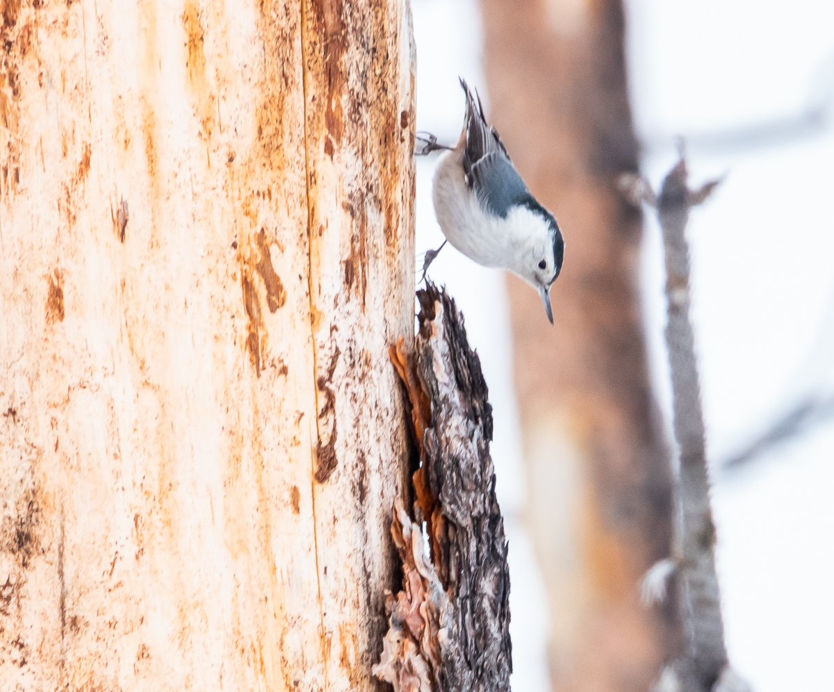 More winter birds hanging around our place. Pine Siskin. American Goldfinch. House Cassin’s Finch. Evening Grosbeak. Red-winged Blackbird. Bald Eagle. And my favorite of this group, White-breasted Nuthatch.