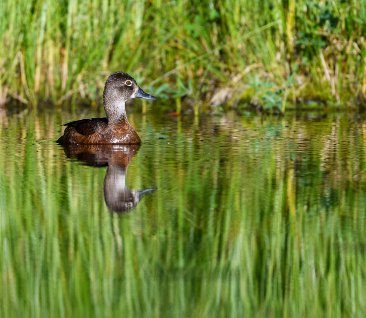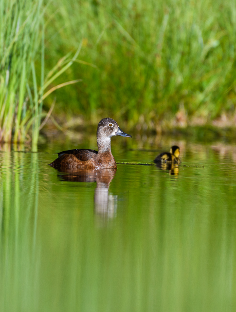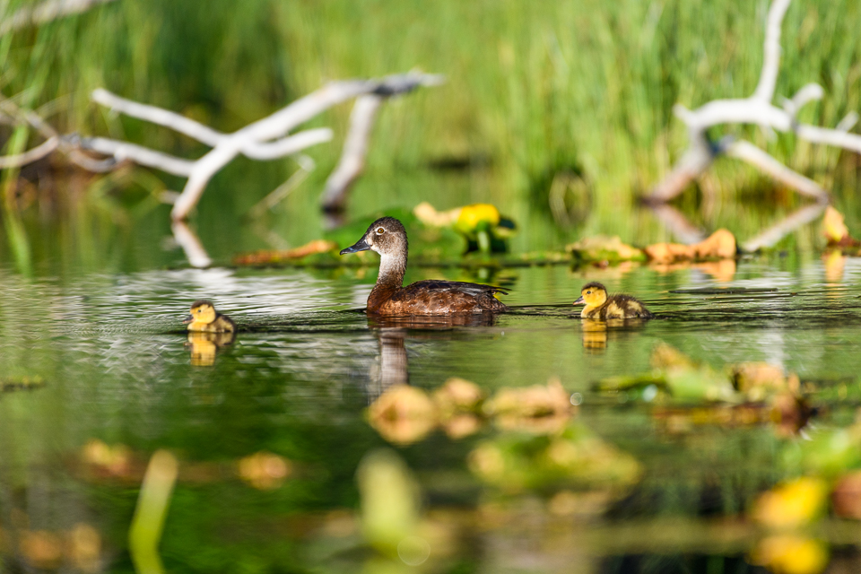 I enjoyed watching this Ring-necked Duck trying to herd her ducklings while I sat quietly in my kayak.