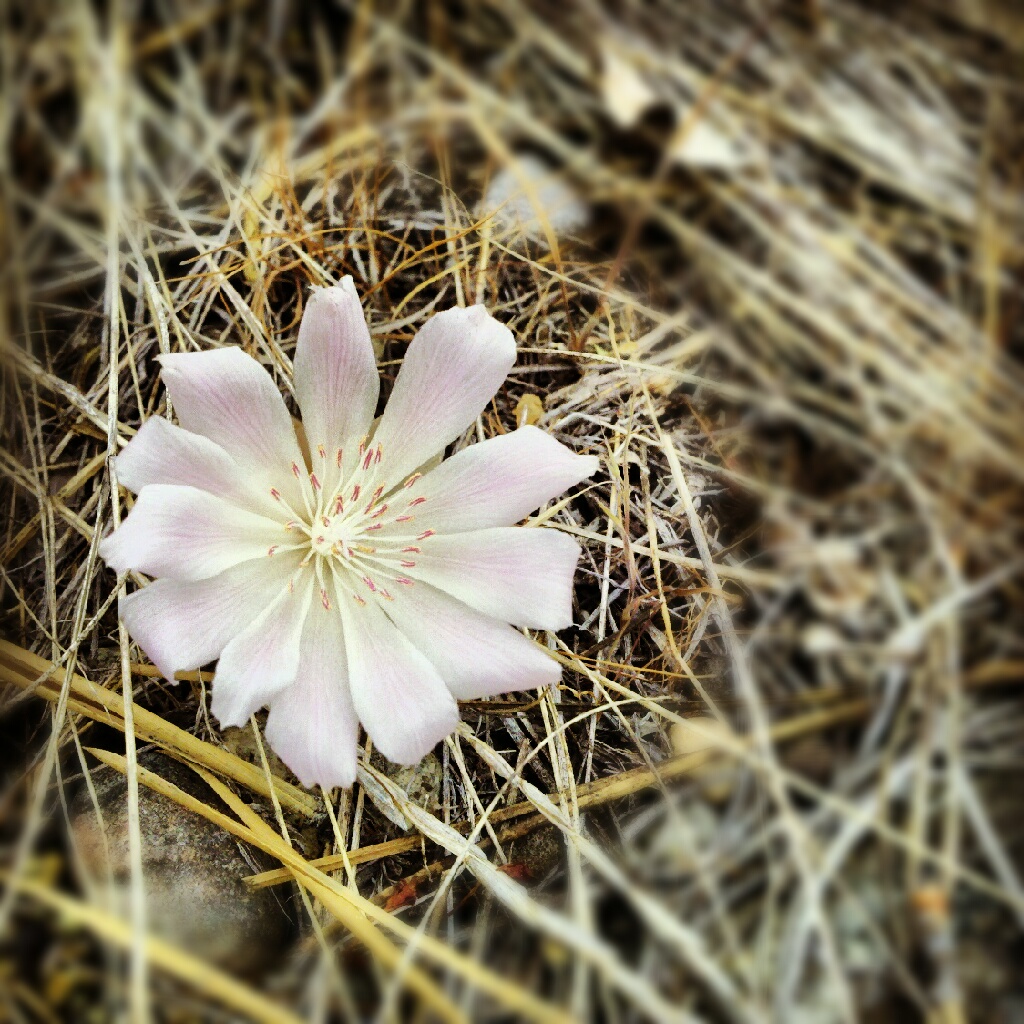 Bitterroot, Lewisia rediviva. On our hillside, it is much whiter, less pink than in other places, such as Patterson Mountain