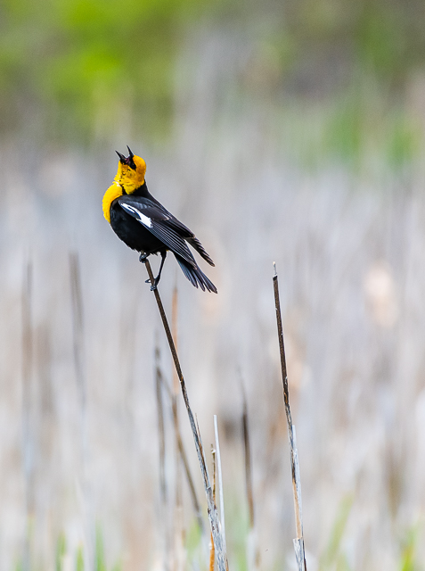Song Sparrows. Yellow-headed Blackbird. Mountain Bluebird with food for a nest full of little ones. Elegant Black Tern. Ring-necked Duck.