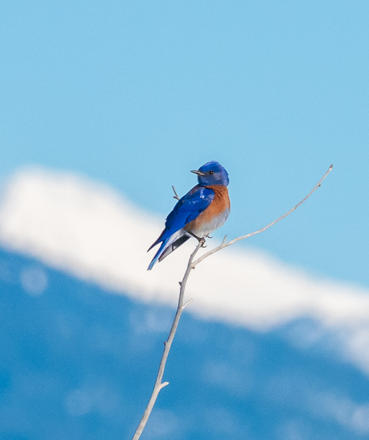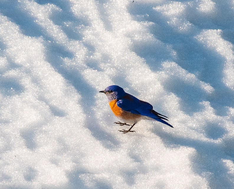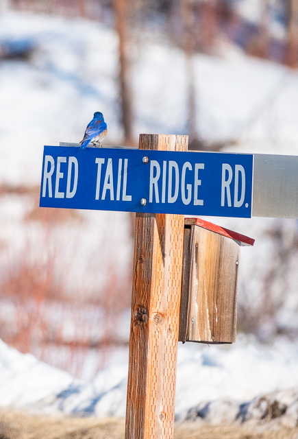 Or maybe it should be End of Winter Birds or Blues. Spring doesn’t begin til Sunday in the northern hemisphere. We still have some snow on the ground but it is decreasing everyday. Say’s Phoebes and Violet-green Swallows are here along the Western and Mountain Bluebirds, Western Meadowlarks and the Dusky Grouse are making appearances too. Here are a few bluebirds and a Western Meadowlark from recent walks on our hill