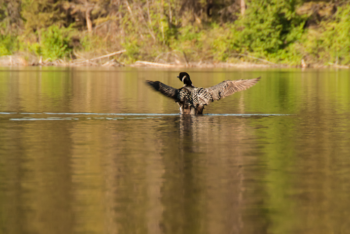 I have been visiting Lost Lake for many years and always it is the Common Loons that fill me with awe. Loons do not find much good breeding habitat in Washington and this lake has been a draw for one pair for as long as I’ve been visiting. Every year there is a nest and it has occasionally failed. Sometimes Bald Eagles snatch the young birds when they are out of the nest but still small. Last year the eagles got one. This year it looks like both young birds have survived, so far. They are growing fast with a diet of fish provided by their parents. They need to grow fast in order to migrate to bigger water for the long cold winter.