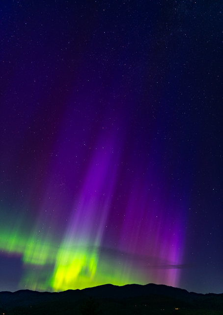 And I did it from my own home. I did not have to drive somewhere a long ways away to find the needed dark skies that makes seeing the stars possible. Of course, the foreground is not all that attractive. There are all the lights on the hills from the ever increasing populations of our valley, the local airport, some cars on the dirt roads after midnight, lights from the nearby church and a power pole. It is where I live and I am happy to be here.