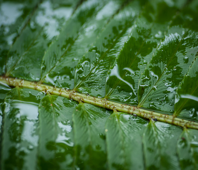 Deep green moss. Old pilings. Ferns growing out of a tree trunk. A blue chair. Beach sunsets.