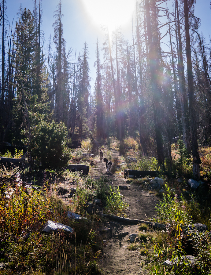 Tiffany looks much different than it did in July. At that time the snow was newly melted and the ground was moist and wildflowers were coming in to bloom. Yesterday, the trail was dusty; most flowers were dried and the grass was crisp. The verdant greens were gone replaced with dusty yellows and oranges. The first larch trees have turned yellow.