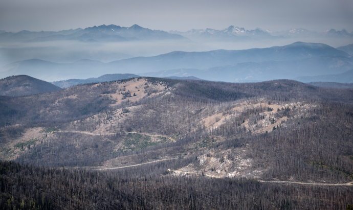 Layers of forest fire smoke fill the valleys and obliterate the views