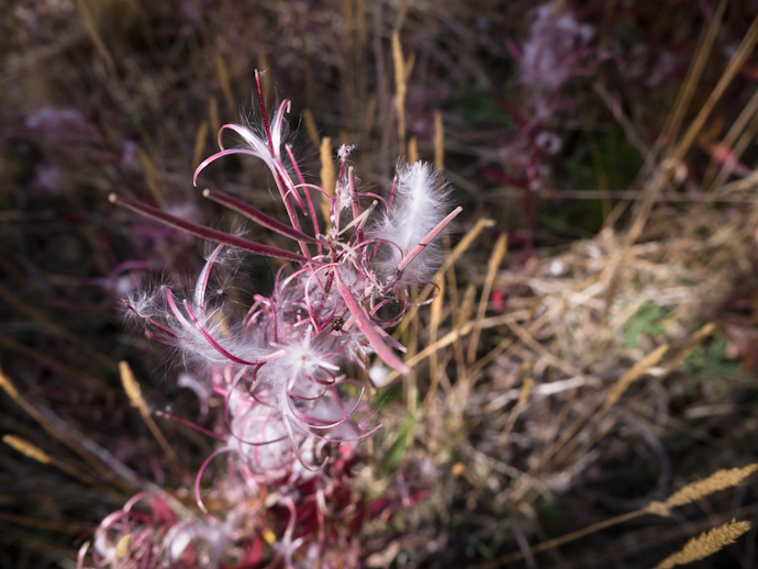 We were at Tiffany for the peak of the fireweed (Chamerion angustifolium) bloom! This tall lavender-pink perennial often comes in after a fire. The Tripod fire burned there nearly ten years ago and the fireweed is still very abundant. I was surprised to learn that its pollen turns blue as the flowers mature. The dogs were spotted with the fine powdery blue pollen. Lots of the wildflowers had mostly finished blooming but we did find some colorful blooms to entertain us along the way.