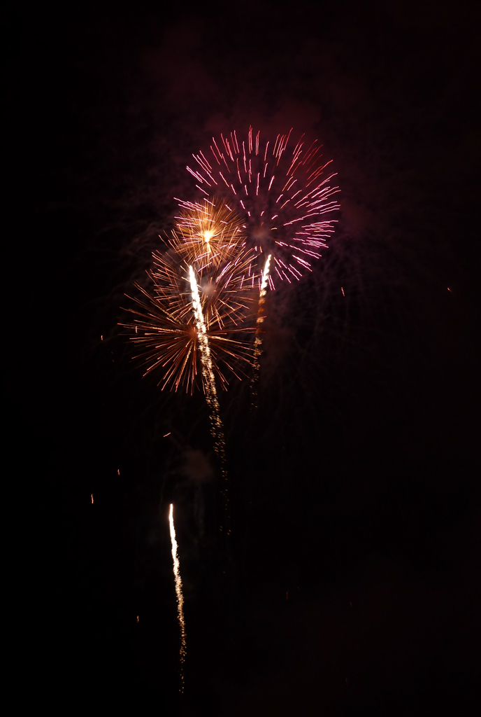 It came as a surprise to me that we could see and hear them from here! I guess we should have realized that. All these years, we have been leaving the dogs home so that they would not be bothered by them. Little did we know, they could see them too. This morning there were at least two reports of dogs gone missing during the show but I think both were reunited with their families.