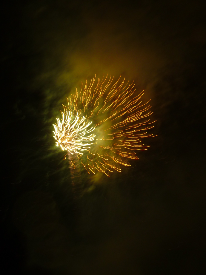 They were not as large and impressive as being in town and there was a thin cloud in between here and town. It made the show a little more interesting.