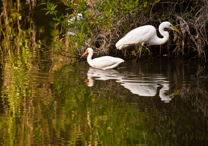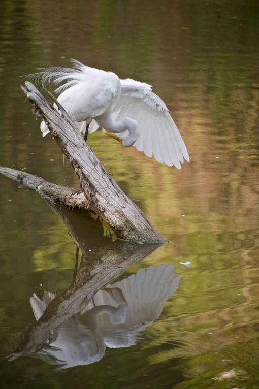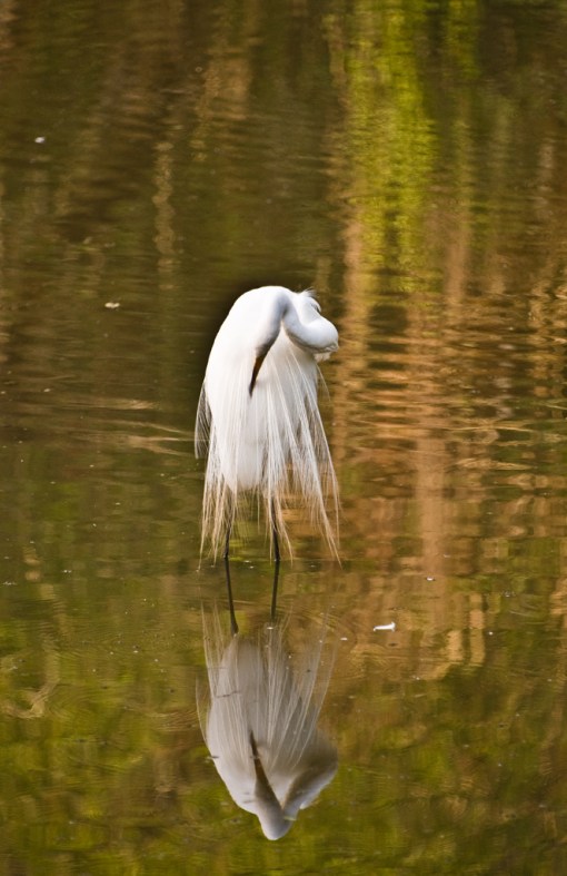 The egret in front was chased all over this pond by the other egret and a heron. We couldn’t figure out why its presence was not appreciated.