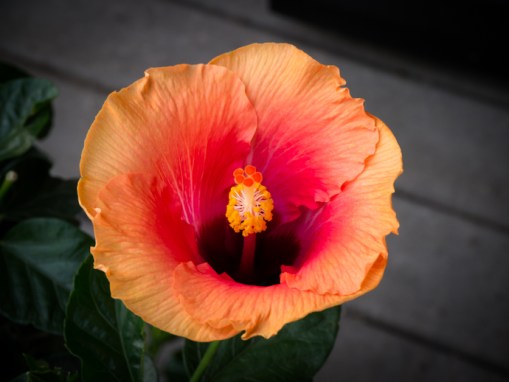 This hibiscus is a recent gift from a friend. The flower’s colors are amazing.