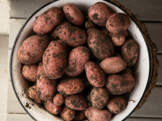 The last couple of years I’ve planted garlic from my previous harvest. This year I am trying some glorious garlic from a family farm in the Twisp River valley. Each head was almost a handful!