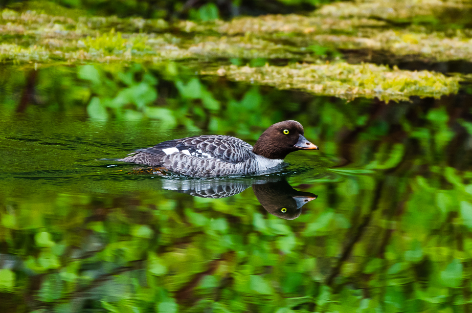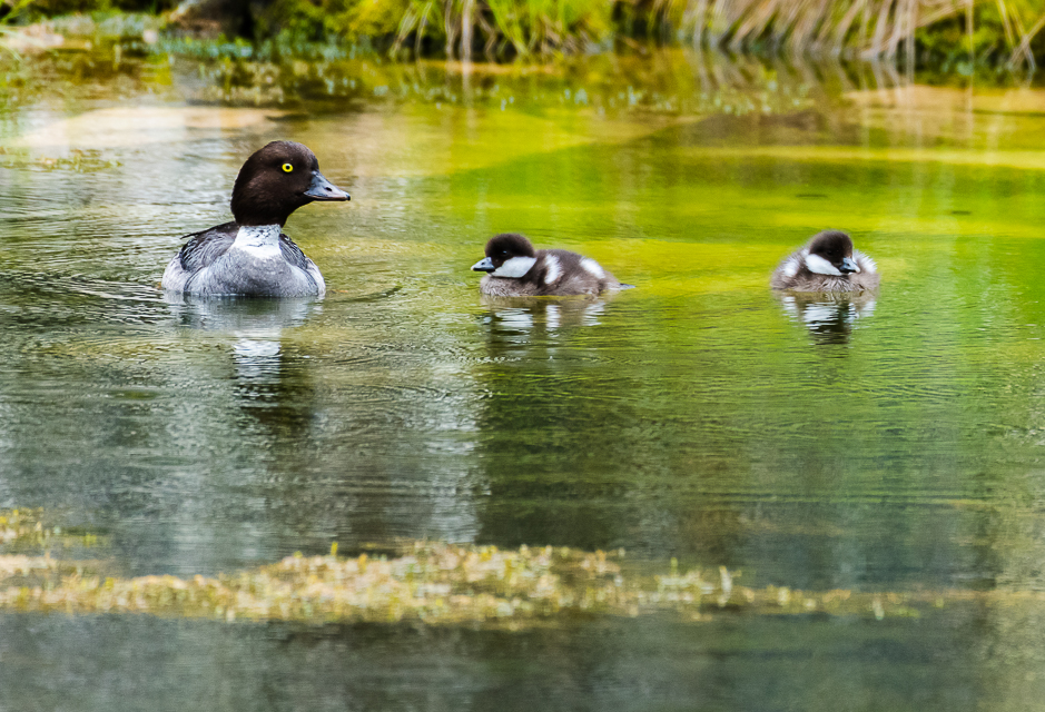 Female goldeneyes are always hard for me to ID. There are two kinds – Barrow’s and Common. The males are easy to separate so if I see a female and male together, I often assume they are the same species. Last week we saw two females, one with ducklings and one on her own. Looking at the All About Birds site from Cornell University, I think both of these are Barrow’s Goldeneyes. But I could be wrong. It wouldn’t be the first time.