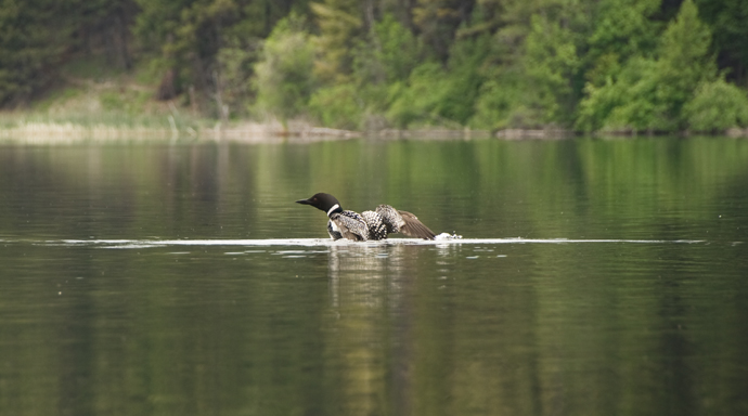 Common Loons nest at Lost Lake. There are only a few places around Washington where they nest so it’s a special place for folks who love the charismatic birds. This season, the nesting pair has lost both of its chicks to marauding Bald Eagles. It is quite a dilemma for bird lovers. We did see a chick on Thursday evening when we arrived but the eagle was watching at the same time. We never saw the baby again so it must have been taken by the eagle shortly after we saw it.