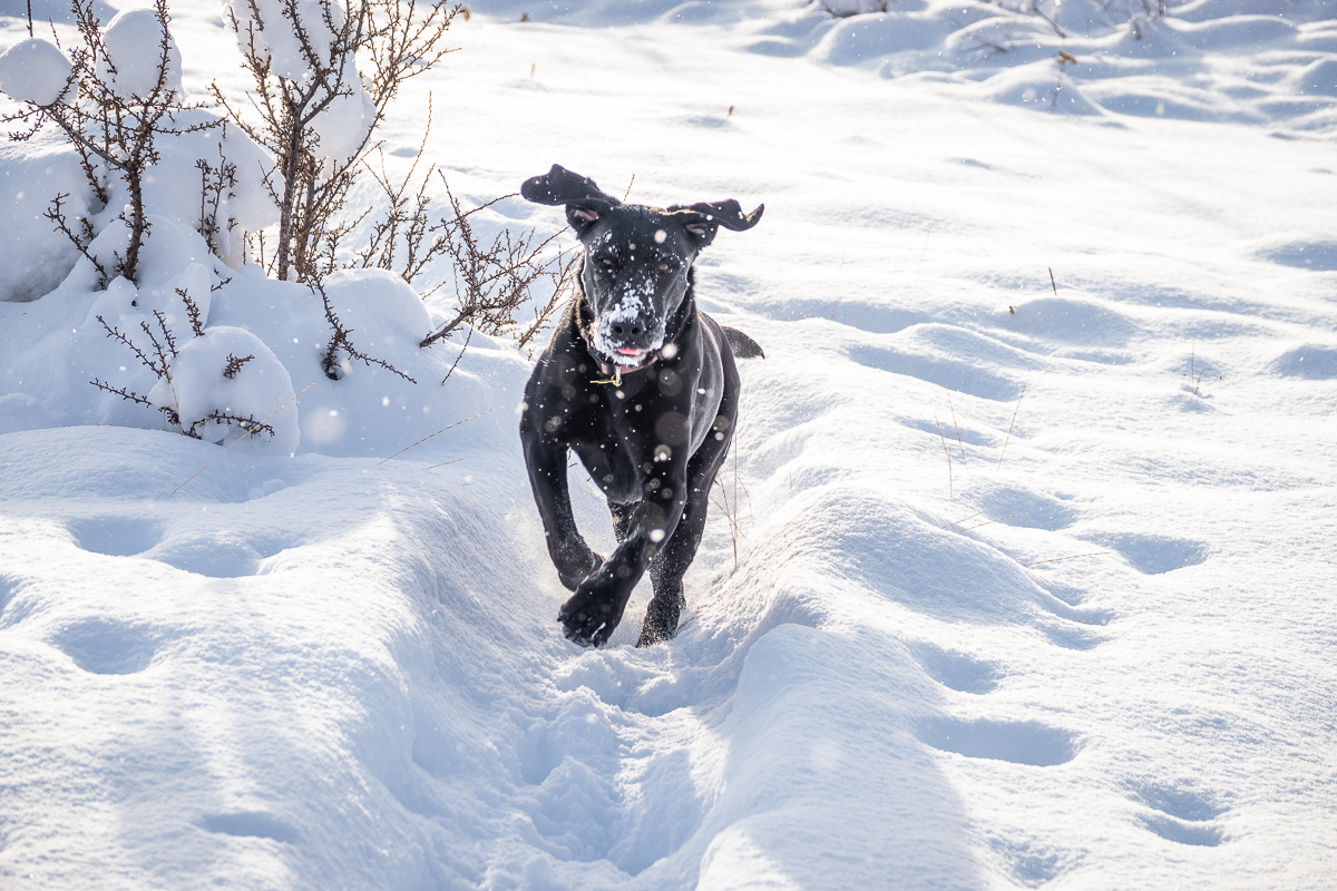 The skiing on groomed trails is wonderful and up until this week, skiing in the hills and backcountry has been marvelous! It made me wish I had some more rugged skis with skins for climbing the hills. A few days ago the temperature warmed over thirty degrees and it felt downright balmy at 34° Fahrenheit. Of course, that sort of ruined the two feet of powder snow, leaving a one inch crust on top of it. It makes it very hard to get around once you are off the beaten path. Even for dogs but Sky seems to manage.