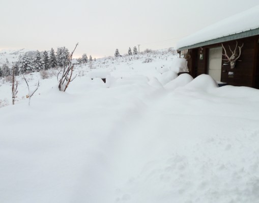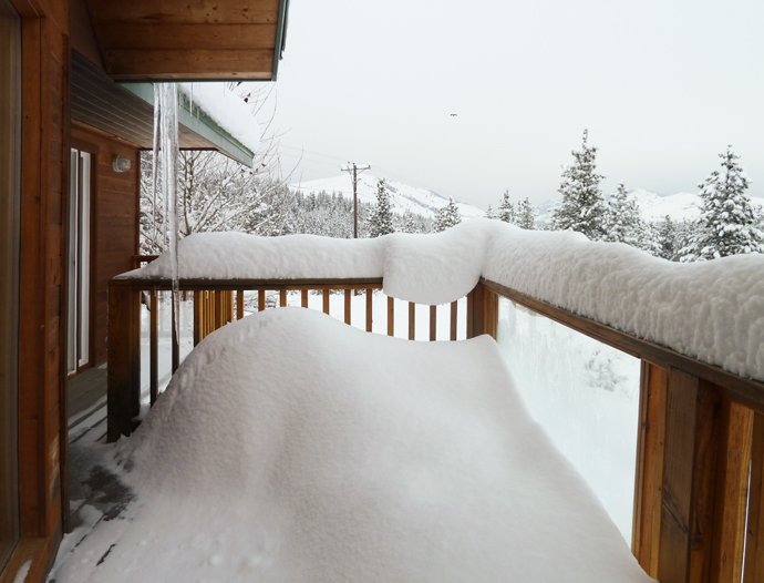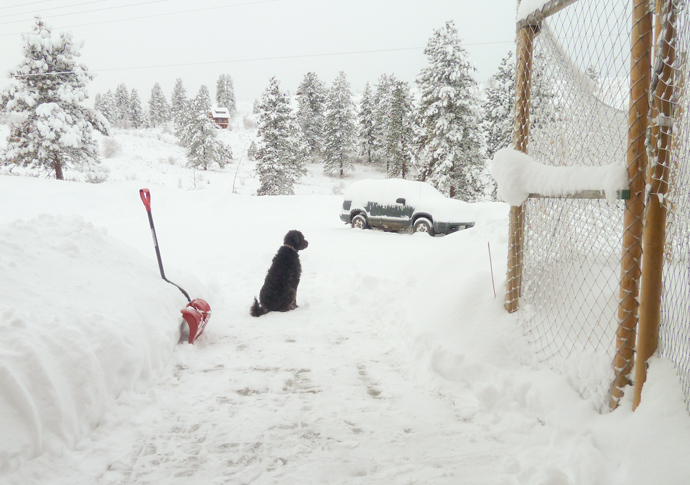 Yesterday was another long day of falling snow. I managed to do some shoveling when it slowed down just before dark. Today was the real shovel day though. I even had to go down to the bottom of the hill and dig out our mailbox. While we appreciate the hardworking folks that plow our road and driveway, we wish they’d take a little bit of care with the mailbox. Also dug out the porch, the paths and the snow that fell from the shop roof, leaving just a narrow walkway to get to the shop and greenhouse. Who needs a gym with all this snow? Luna and I enjoyed a slow walk too.