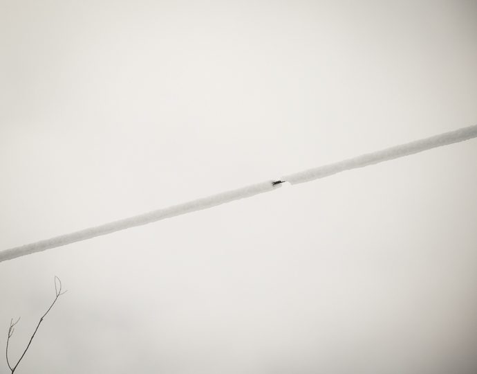 Snow weighs heavily on the fiber. It vibrates with the weight.