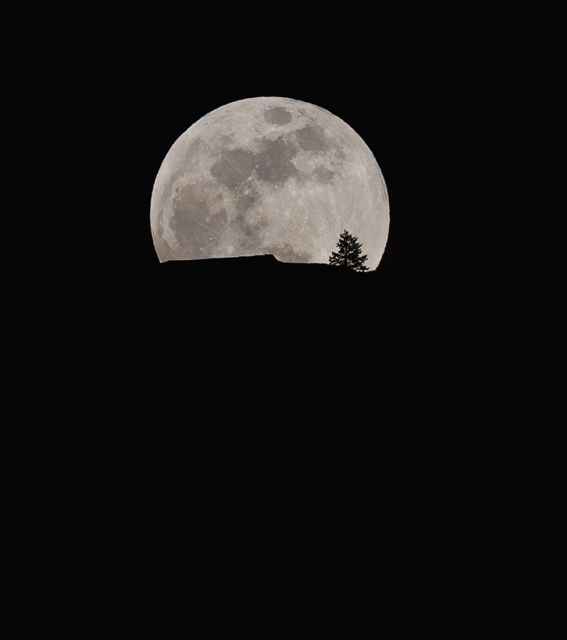 I needed to drive somewhere to see the total lunar eclipse last week but I just rolled out of bed and watched it from here. The last photo is as it approached the horizon prior to totality.