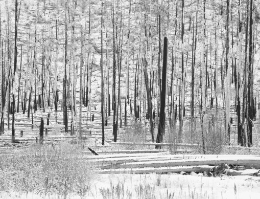 And the lonely snags from the 30 Mile Fire, ten years ago. Wind blowing through them made an eerie wailing sound. No doubt, these woods are haunted.