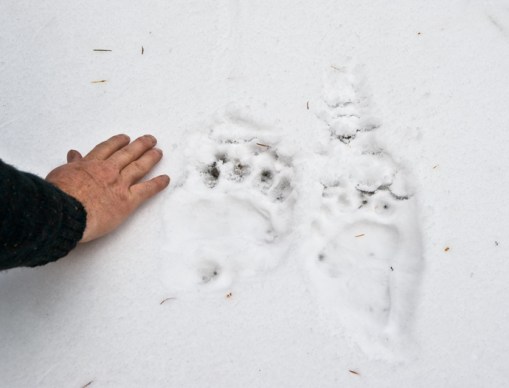 And a big black bear. It walked along the road between when we drove up and when we returned. This was the second set of bear tracks we saw yesterday. I wonder when they will begin hibernating?