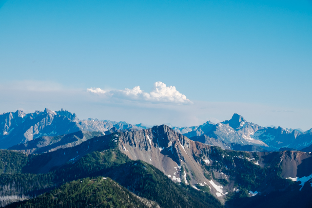 This is not one of my favorite hikes and I seldom do it anymore but it does offer great views of the valley and of the mountains to the west. It’s not a long hike but it’s steep and the trail has a lot of loose rock. It turns out, those were the least of my worries. As I was getting close to the top, a couple coming down warned me about a mountain goat at the top. Mountain goats are potentially quite dangerous. They have killed hikers in the Olympic National Park and last year, our friends’ dog, on a leash, was gored by one on a popular hiking trail near here. So I don’t like to see them when I am out hiking with my dogs.
