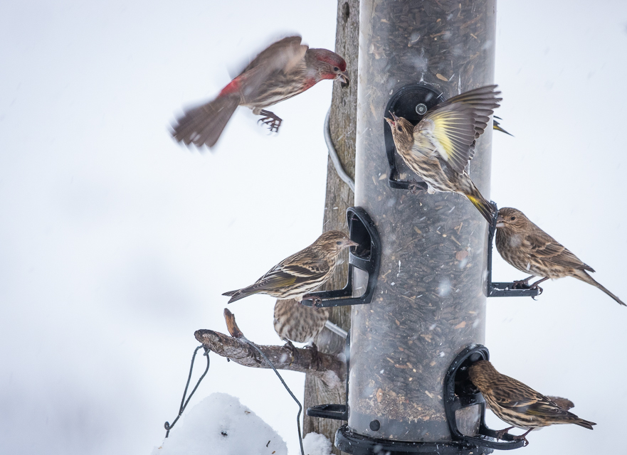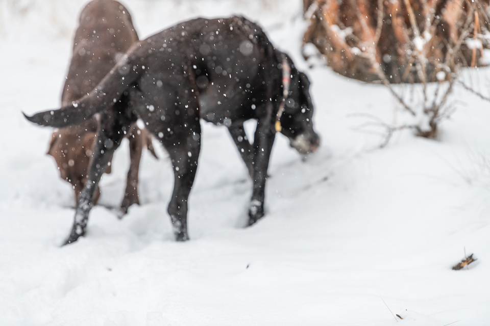So I ventured out in the snow. Finches crowded the feeders and didn’t mind my presence. The dogs were not so sure about staying out too long, especially Luna. They were somewhat cooperative.