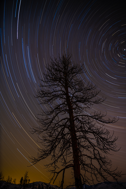 And I did it from my own home. I did not have to drive somewhere a long ways away to find the needed dark skies that makes seeing the stars possible. Of course, the foreground is not all that attractive. There are all the lights on the hills from the ever increasing populations of our valley, the local airport, some cars on the dirt roads after midnight, lights from the nearby church and a power pole. It is where I live and I am happy to be here.