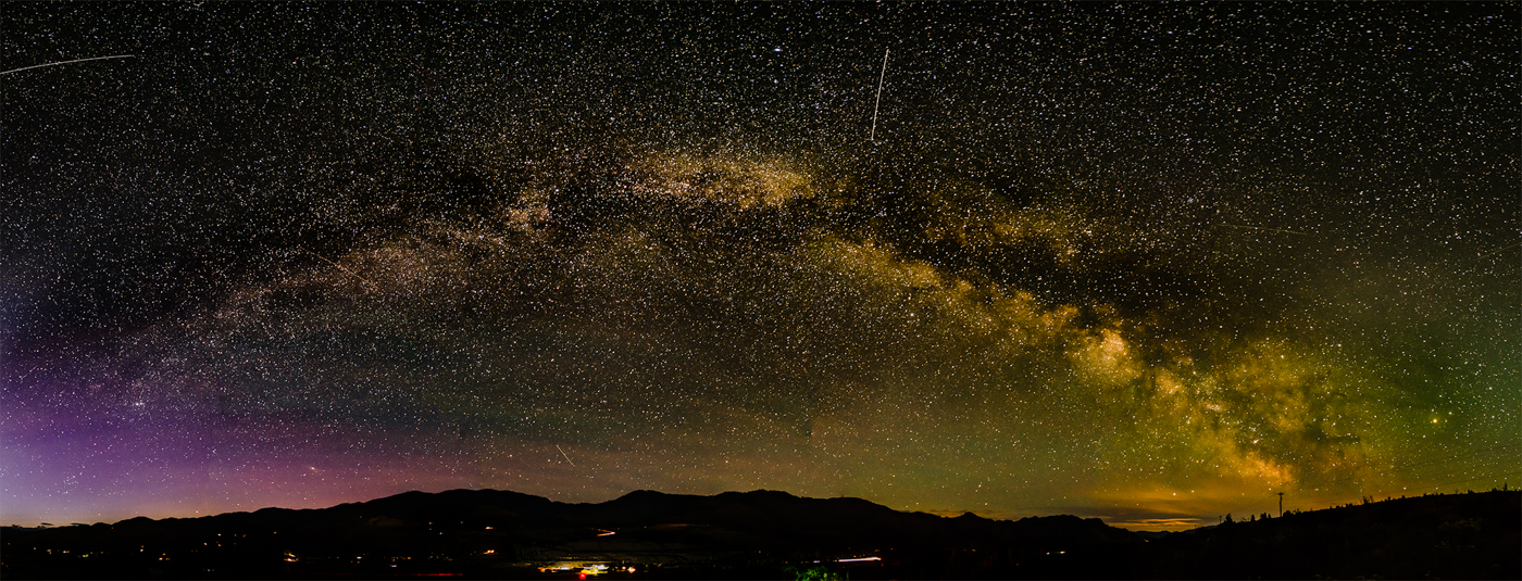 This image is made from eight images stitched together and represents about 180° to capture the entire arc of the Milky Way.