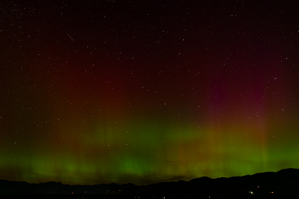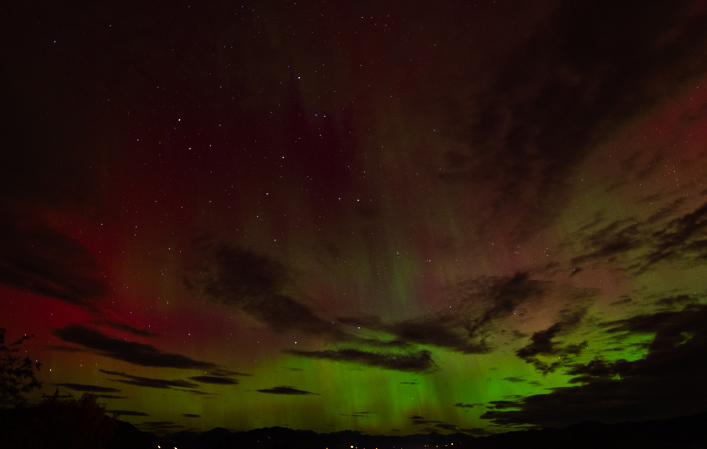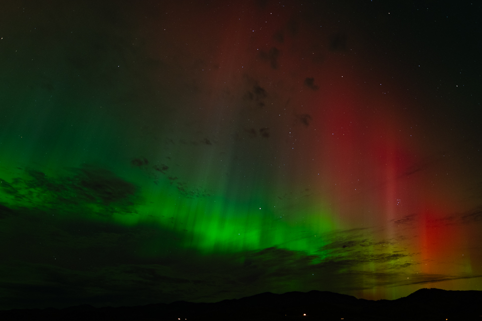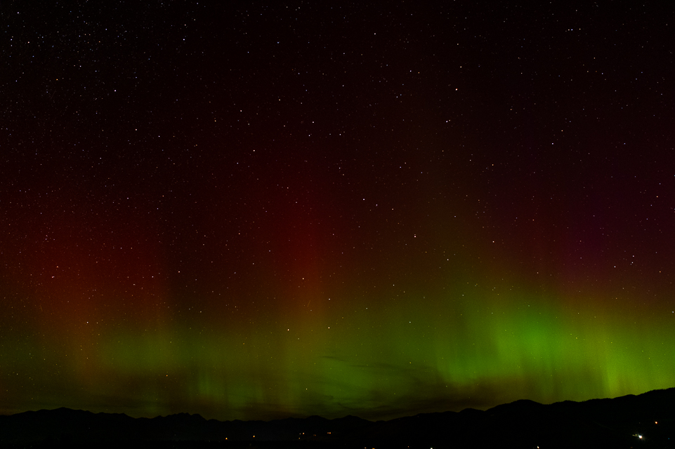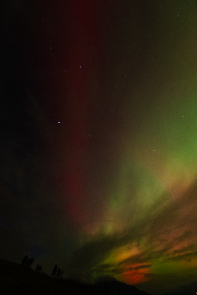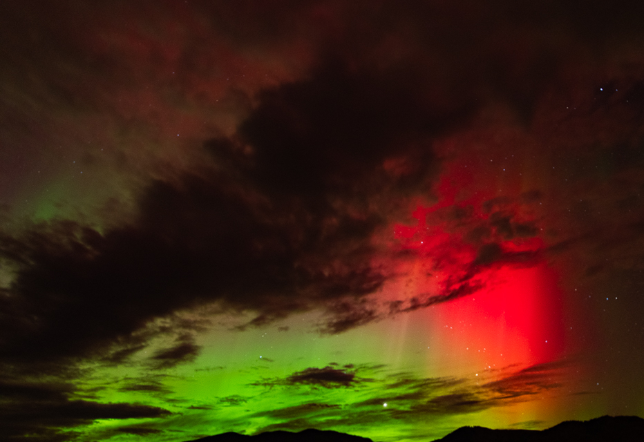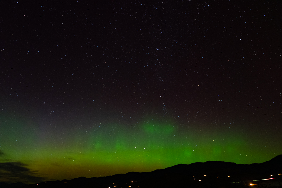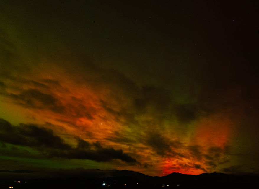 Did you see the Northern Lights last night? I had seen predictions of a good show but a partly cloudy sky didn’t leave me too optimistic. I did get a camera and tripod out, just in case. Shortly after dark, a friend texted me an amazing shot of bright red color from her phone! I quickly found my warmest coat and put on some boots and grabbed the setup. I started with a 24-70 mm lens but quickly went inside for the 14-24 mm lens. The light show covered so much of the sky. I longed to be somewhere other than home where my view is cluttered with power lines, homes with all their lights burning and the infernal light of the Winthrop hockey rink. Sigh. Still, it was a great show, til the clouds rolled in.